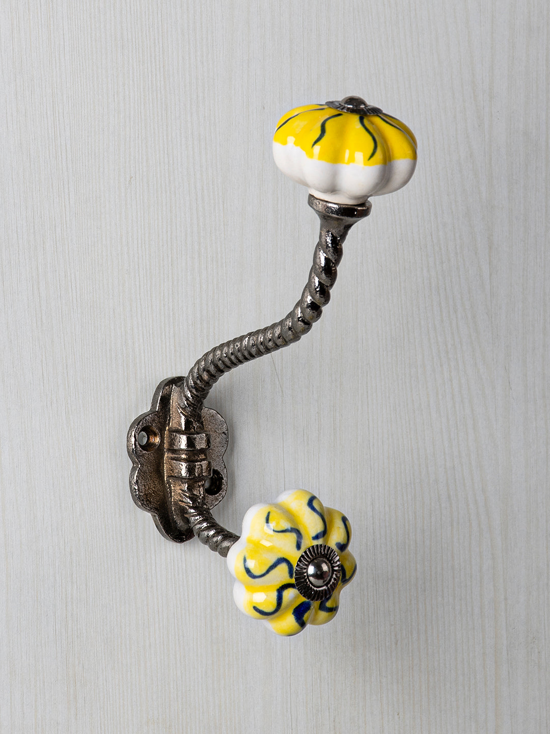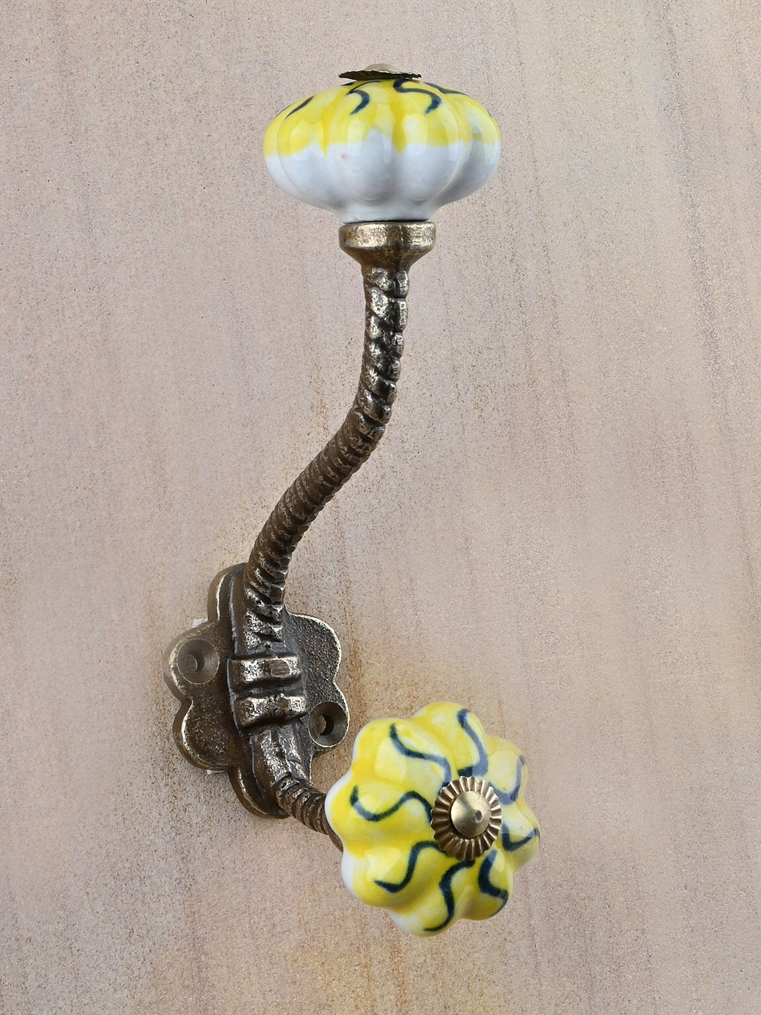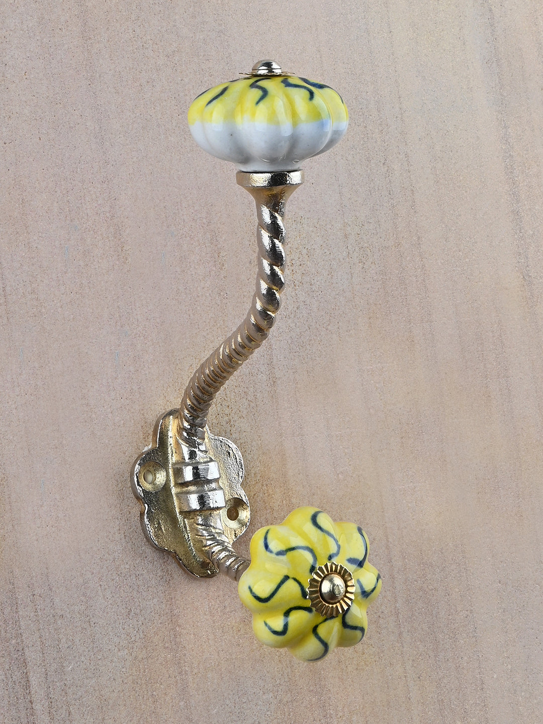 White And Yellow Ceramic Knob With Metal Wall Hanger