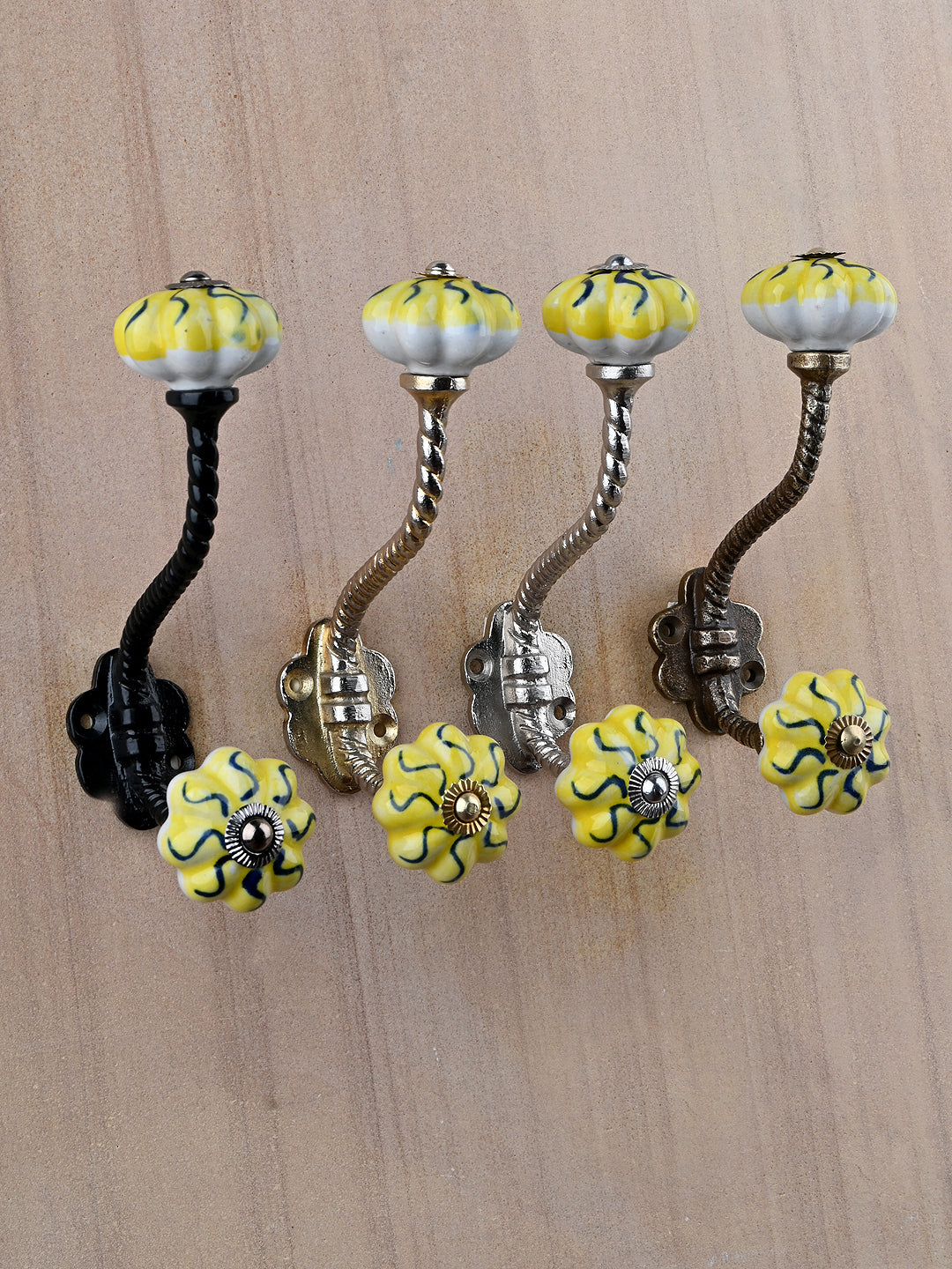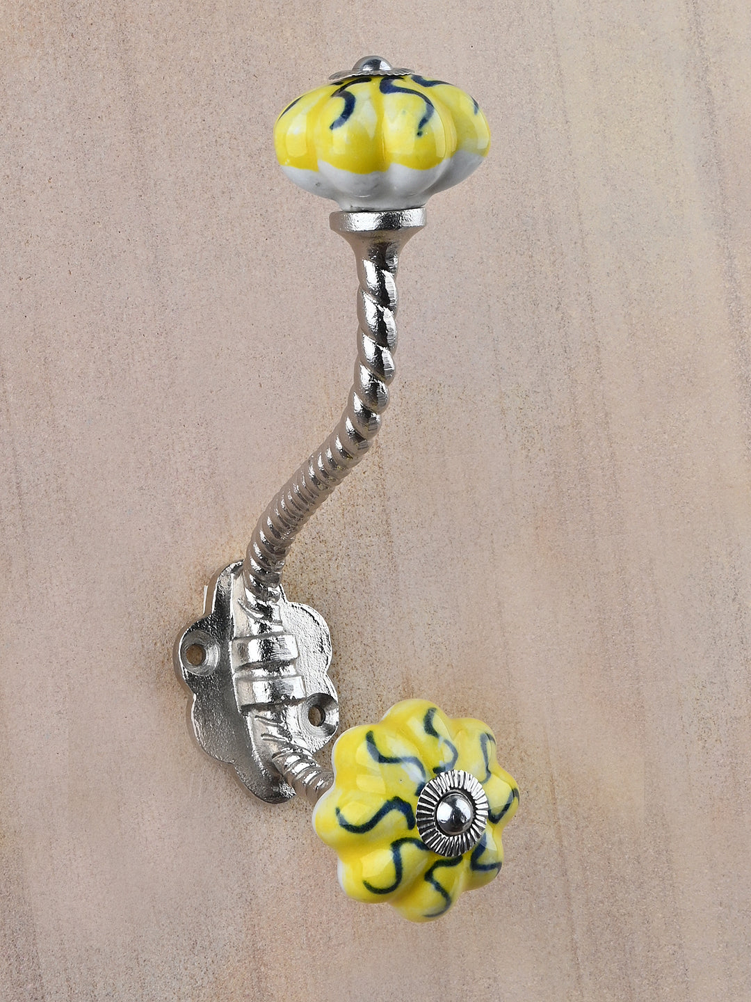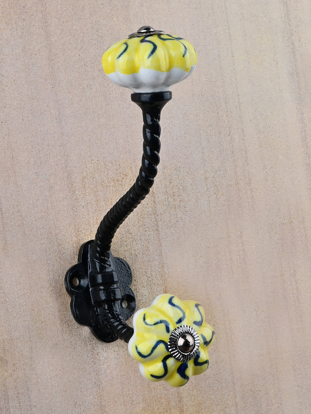 White And Yellow Ceramic Knob With Metal Wall Hanger