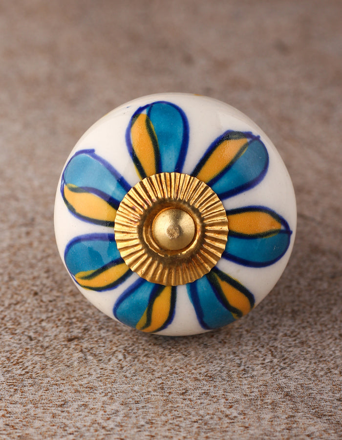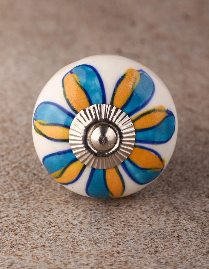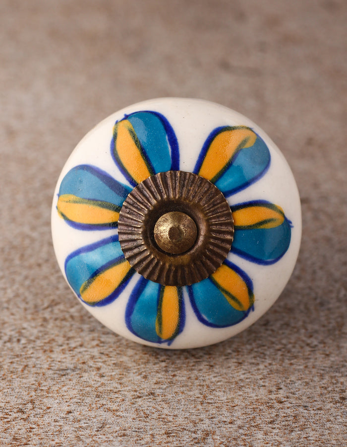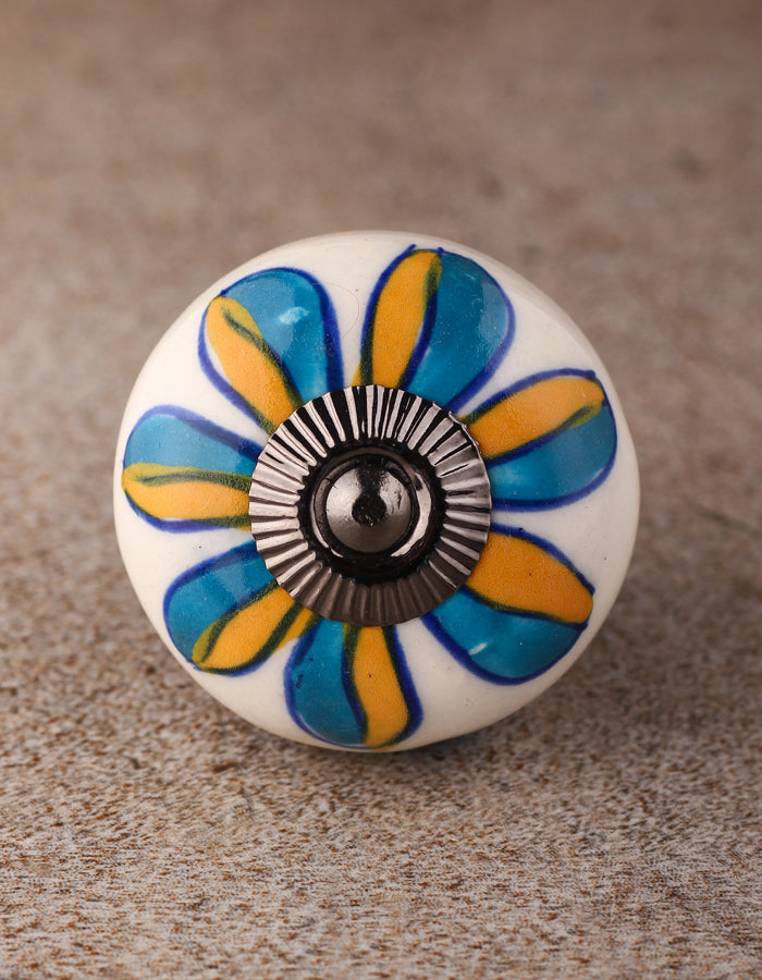 White Base Cabinet Knob With Yellow and Turquoise Flower