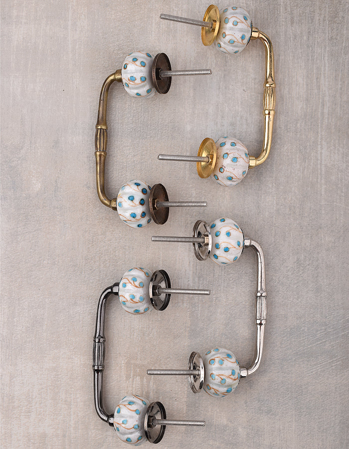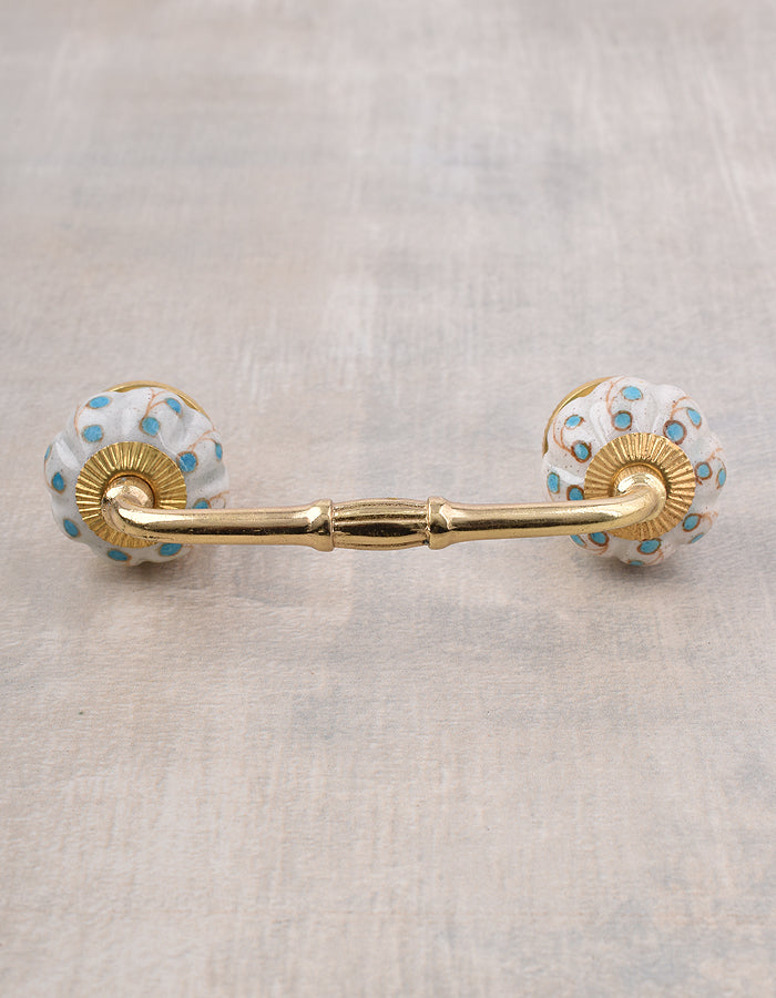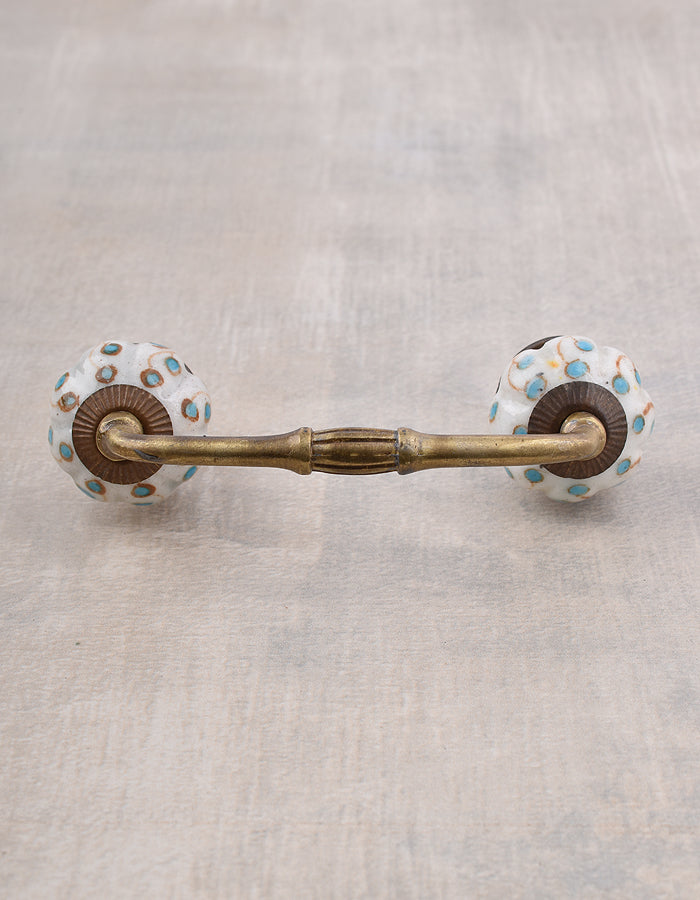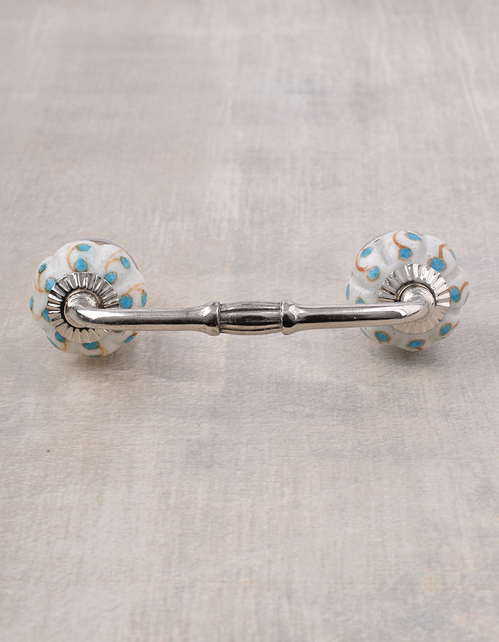 White Base Ceramic Wardrobe Cabinet Pull With Turquoise Dots