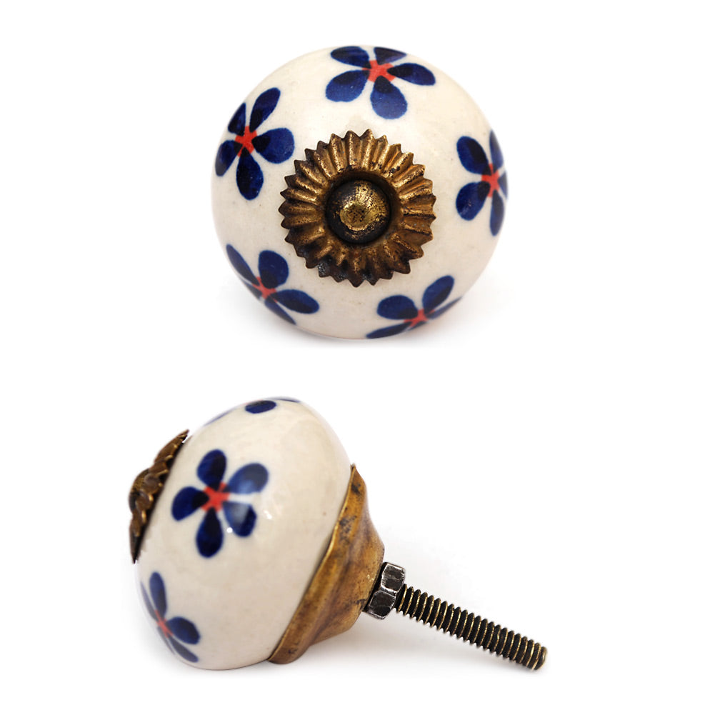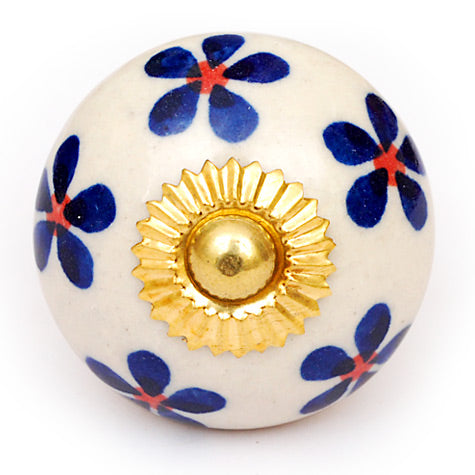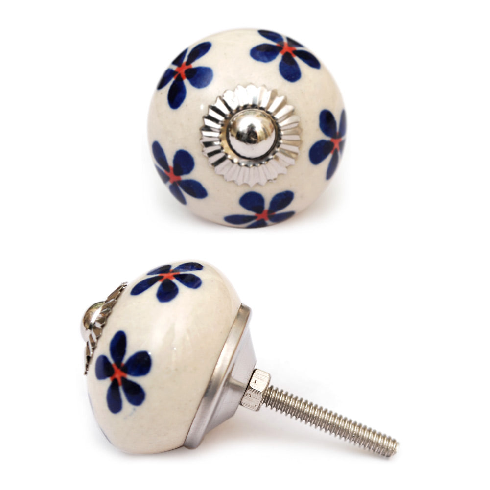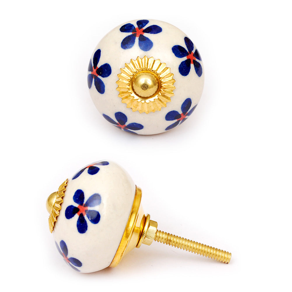 White Cabinet Knob With Blue Flowers