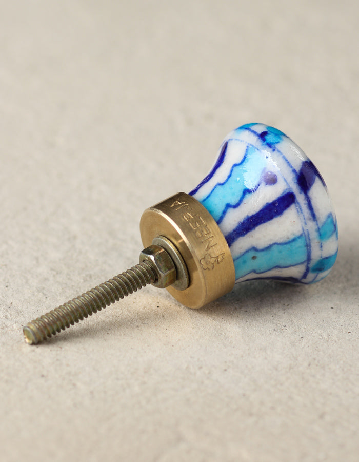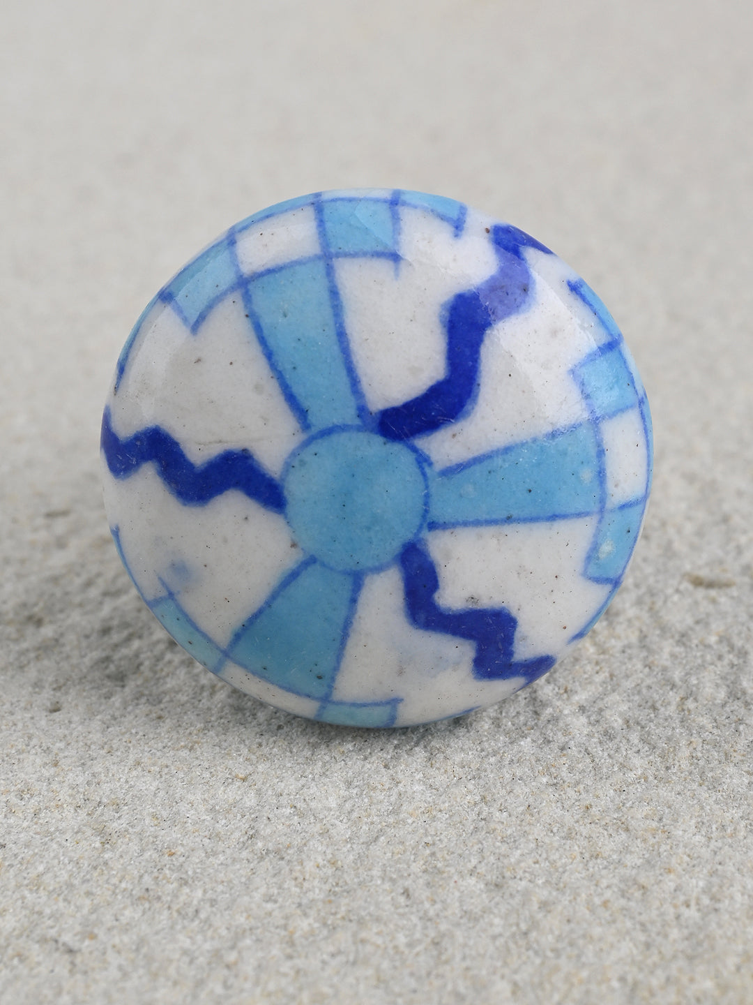 White Ceramic Blue Pottery Drawer Knob With Turquoise And Blue Print