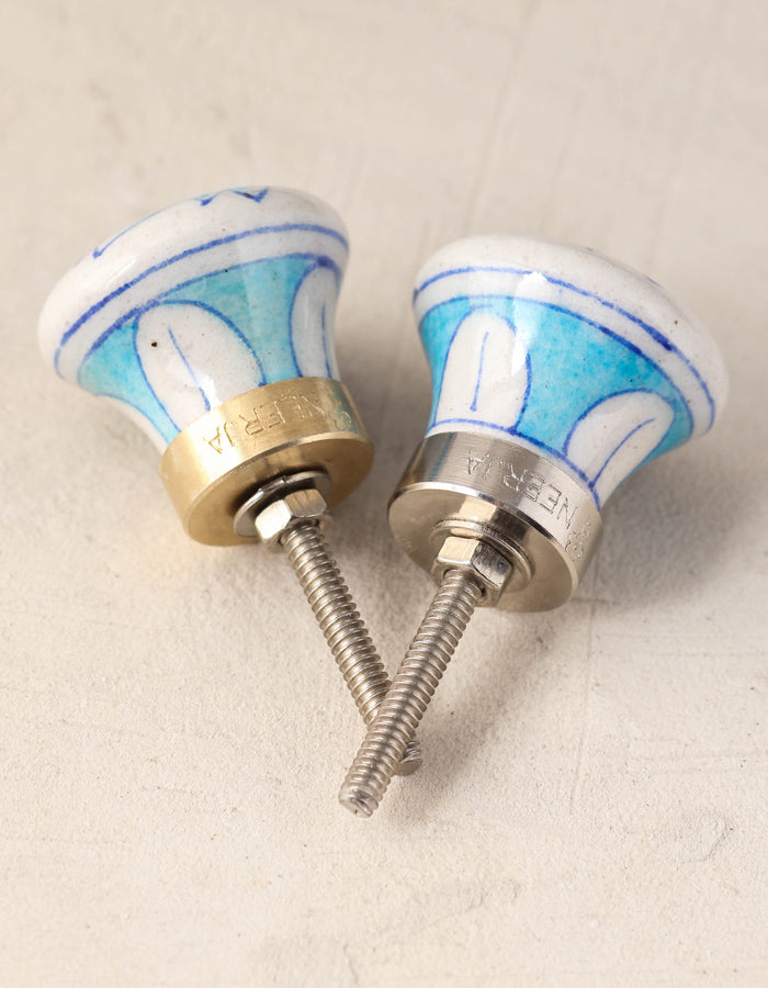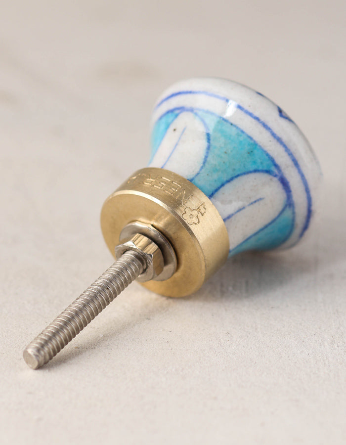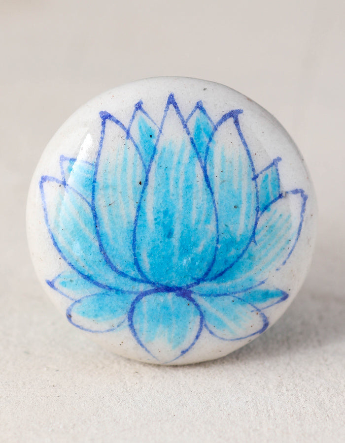 White Ceramic Blue Pottery Dresser Cabinet Knob With Turquoise Lotus Flower