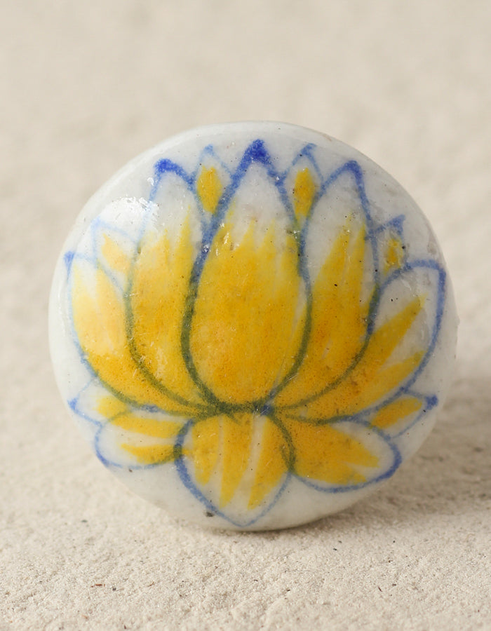 White Ceramic Blue Pottery Dresser Cabinet Knob With Yellow Lotus Flower is sure to get you a step closer to the natural feel that you need for your home.