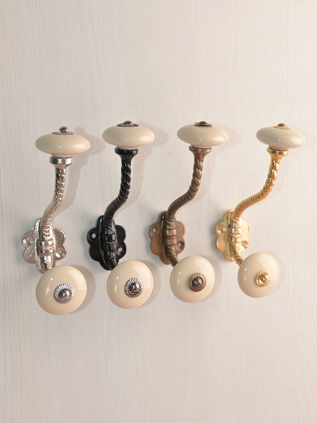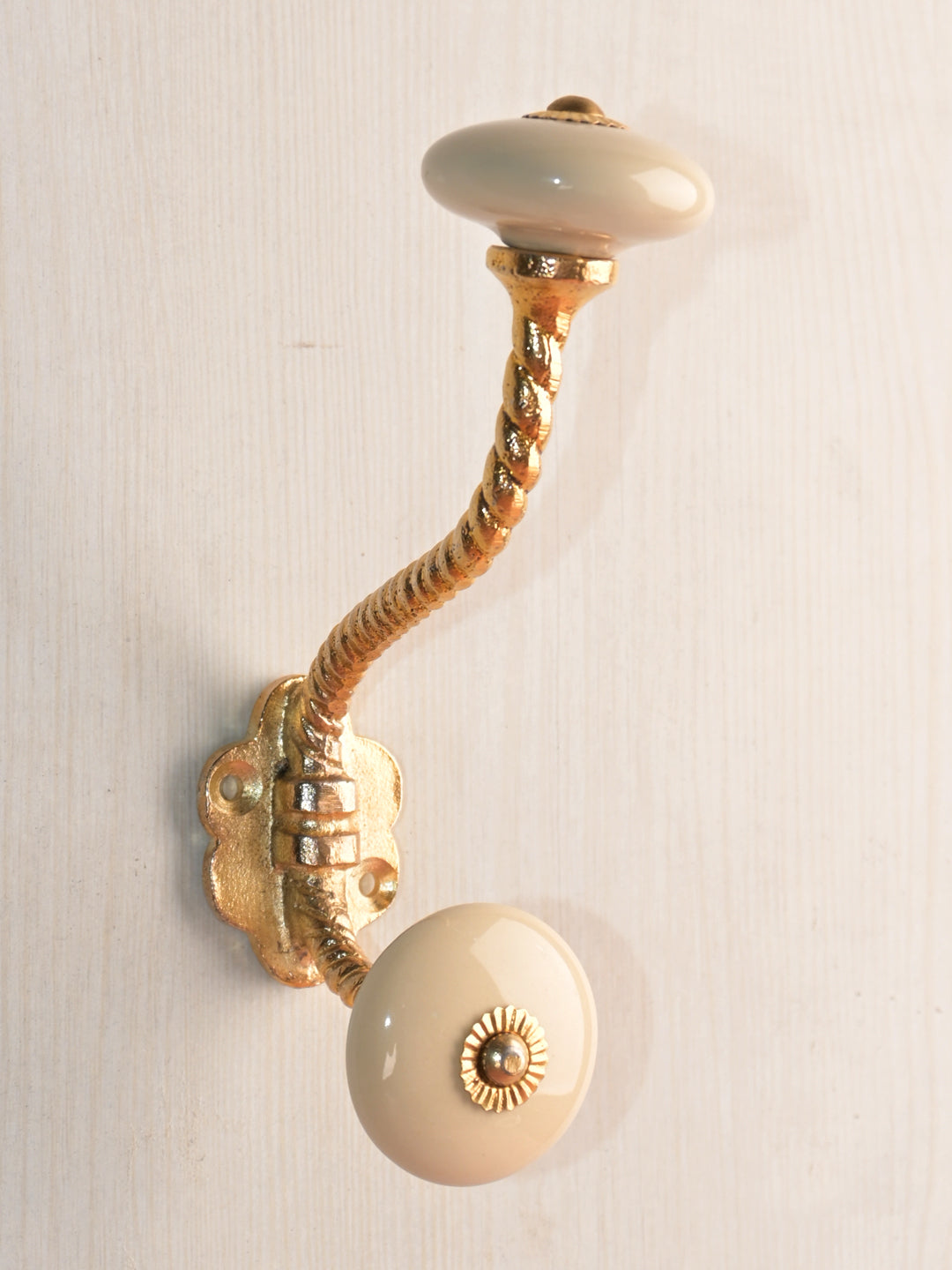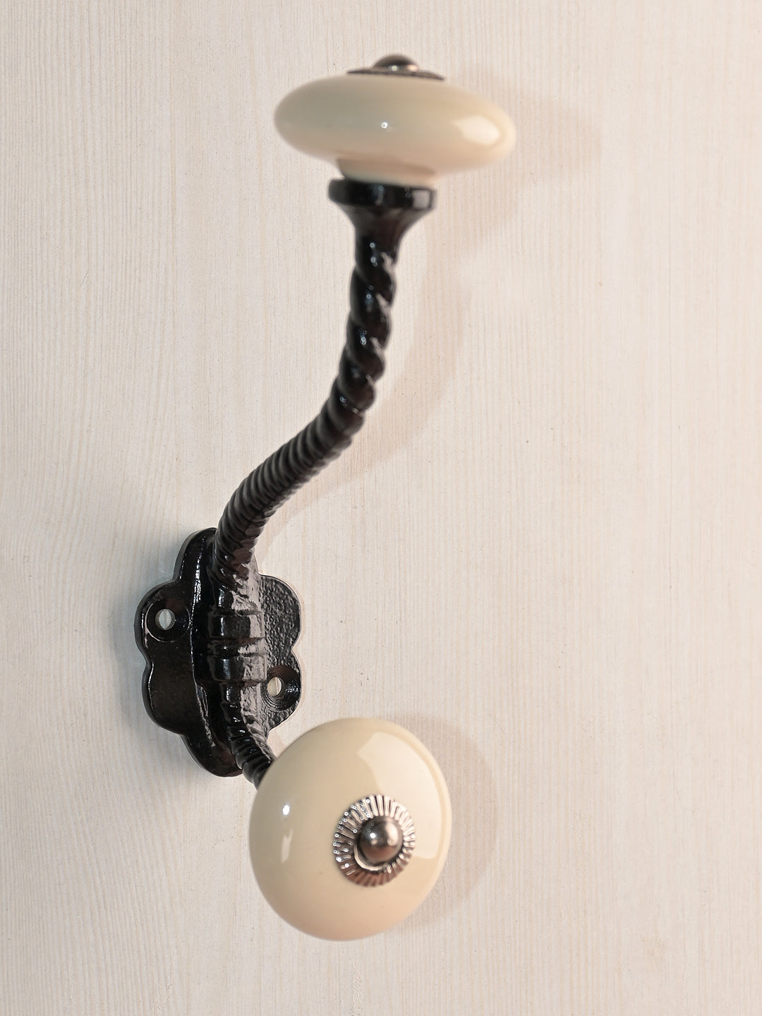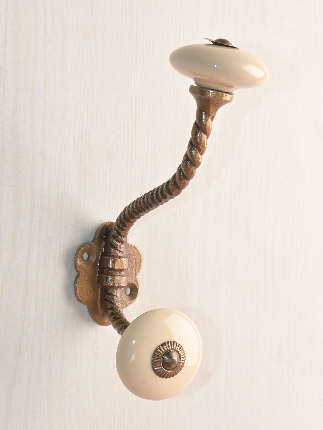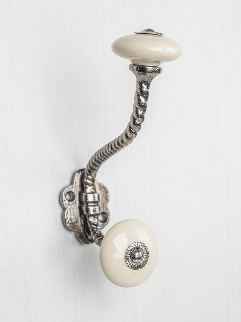 Off White Ceramic Cabinet Knob With Metal Wall Hanger