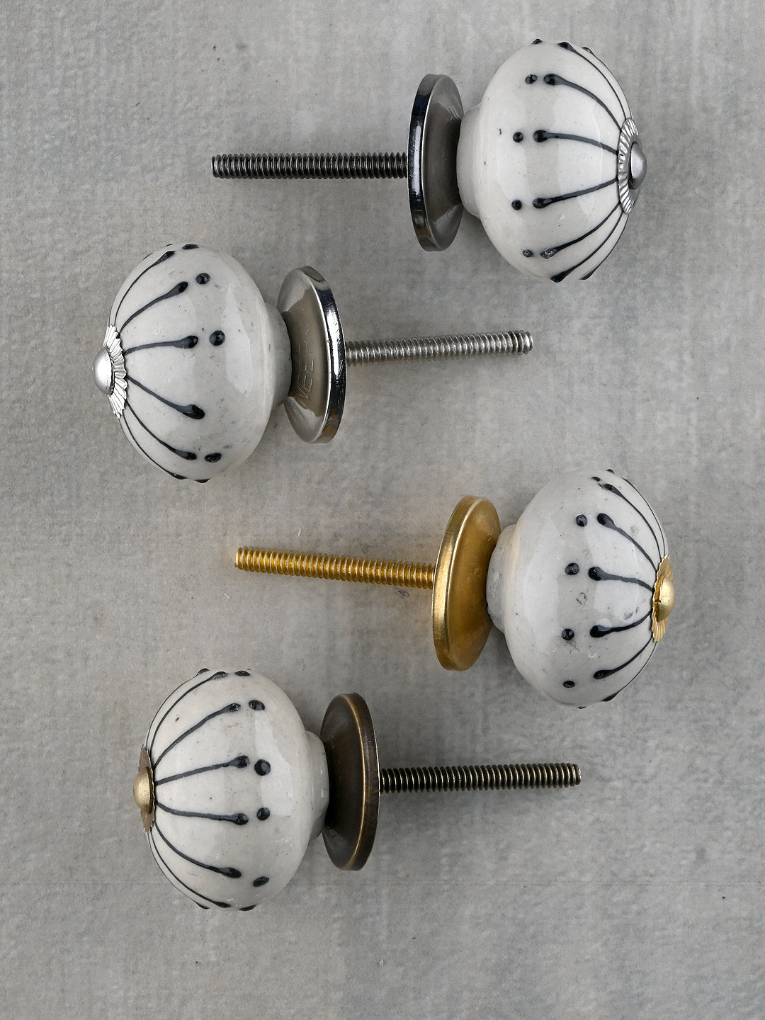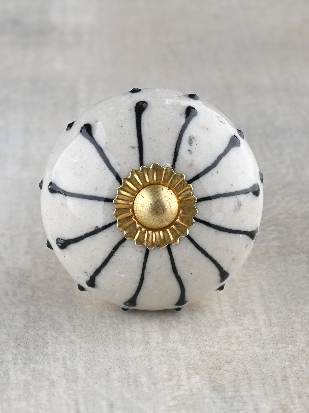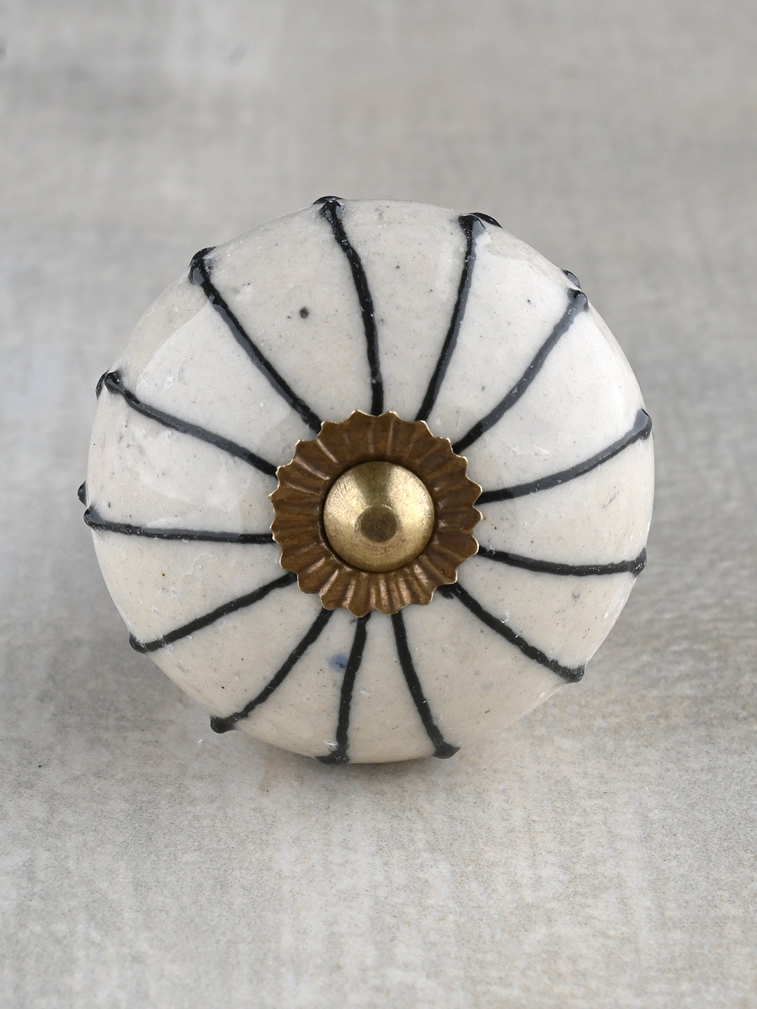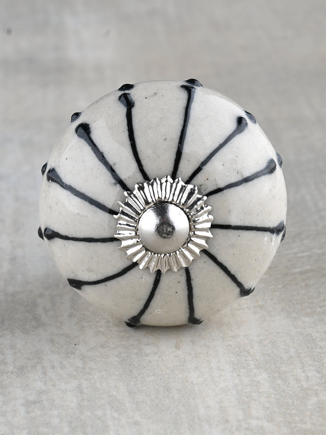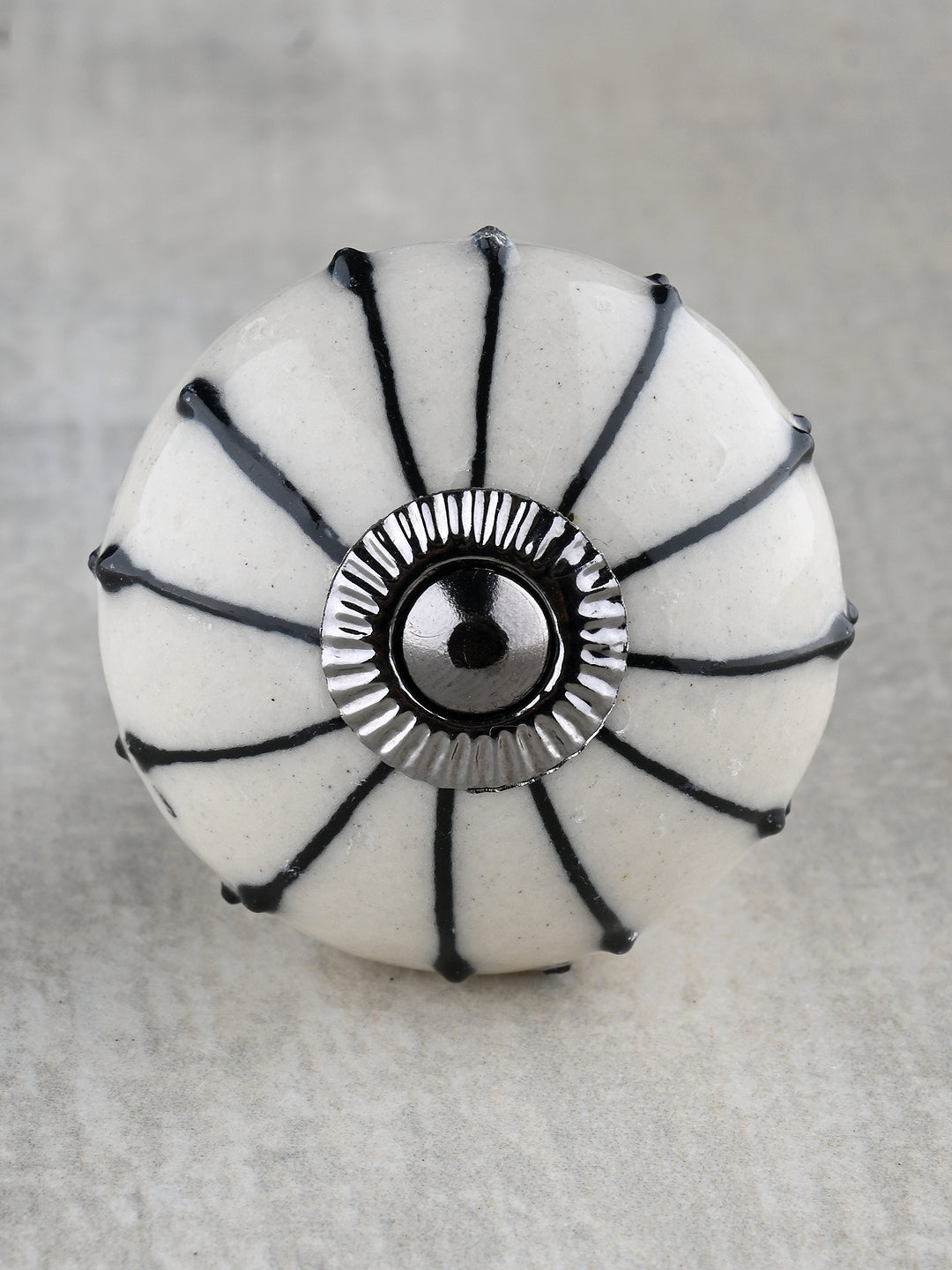 White Ceramic Drawer Cabinet Knob With Black Spiral Lines