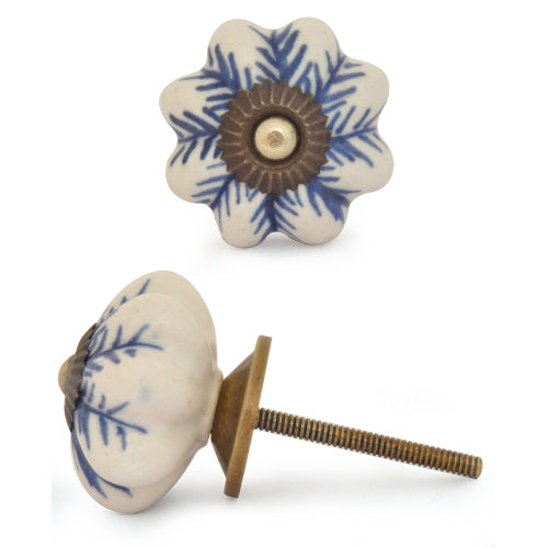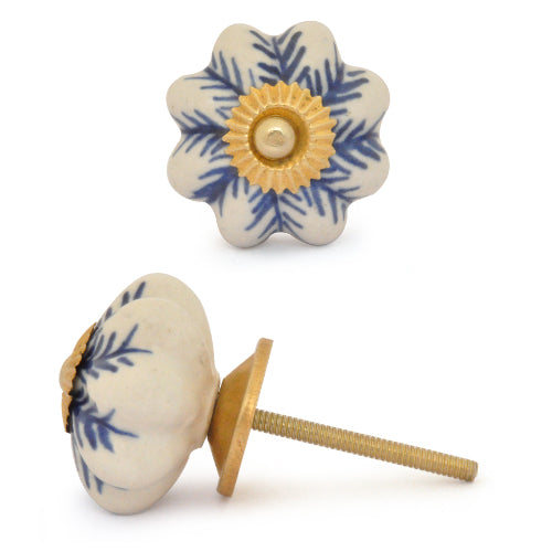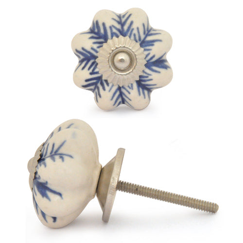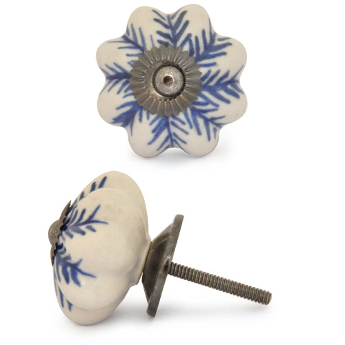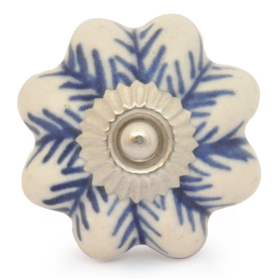 White Ceramic Drawer Knob With Blue Print