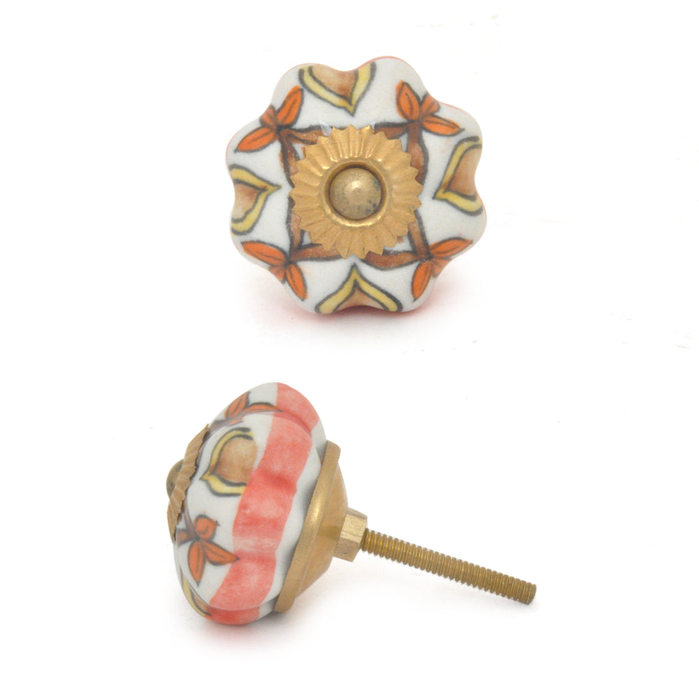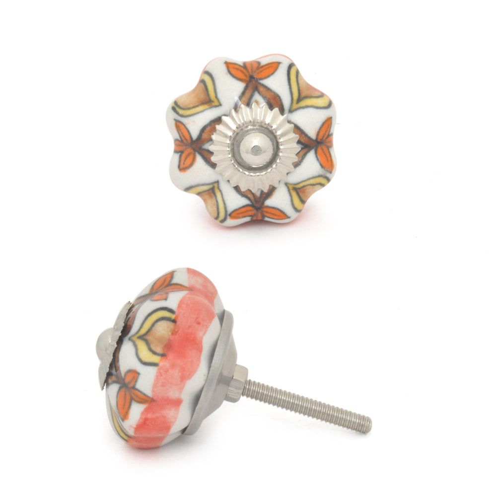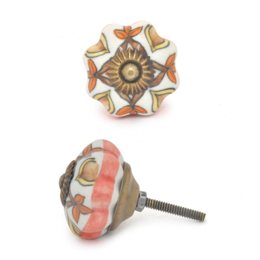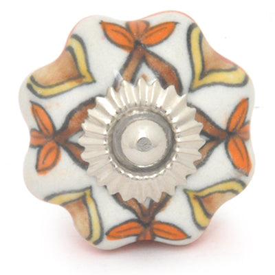 White Ceramic Dresser Cabinet Knob With Brown and Orange Print