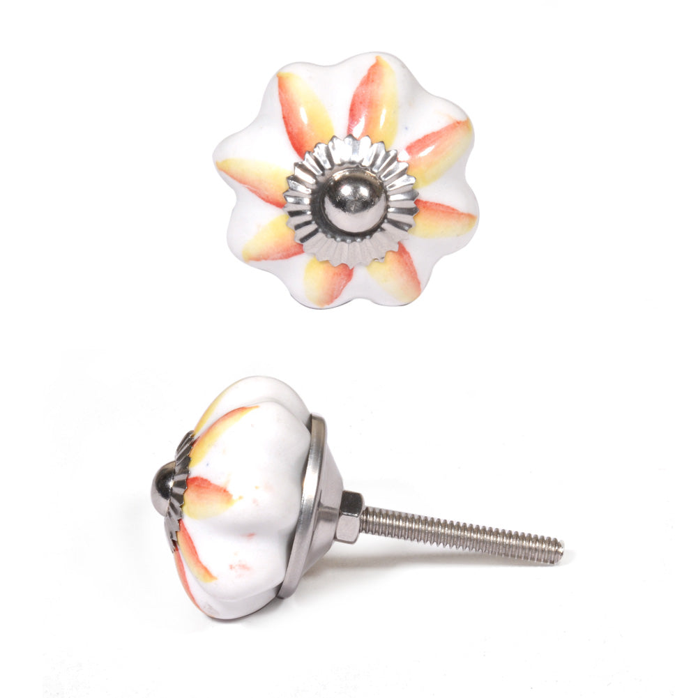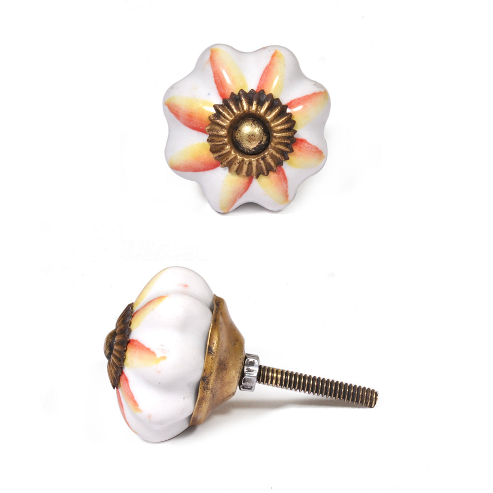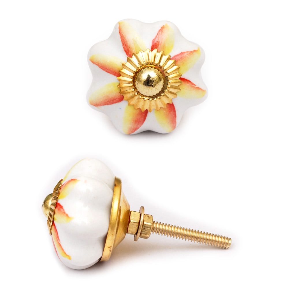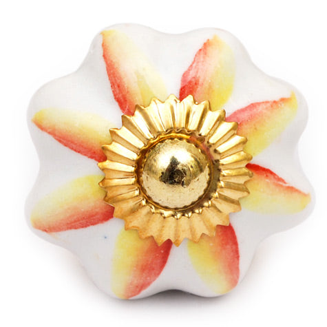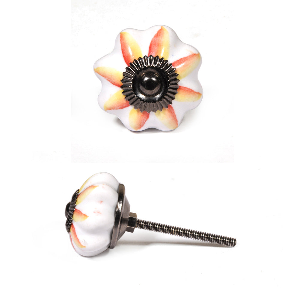 White Ceramic Dresser Cabinet Knob With Red And Yellow Flower