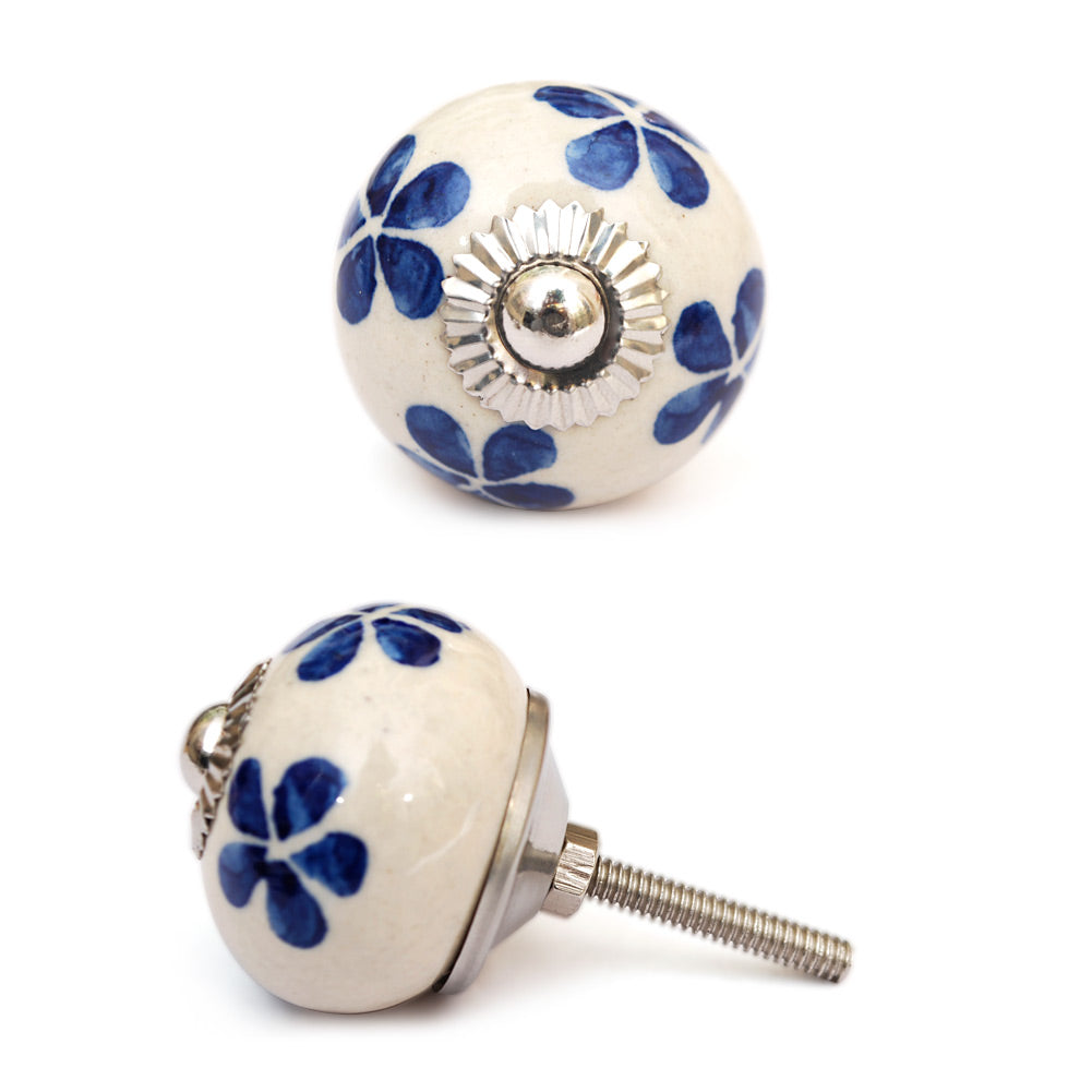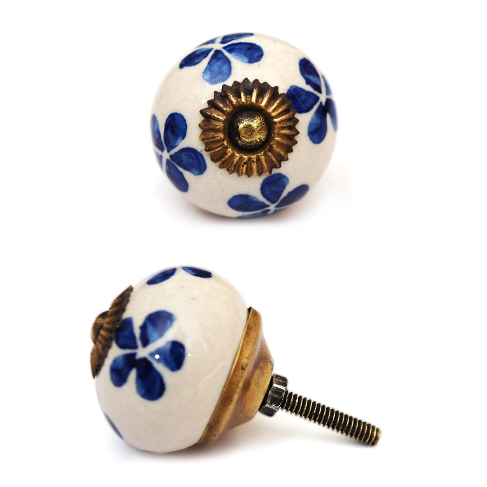 White Ceramic Kitchen Cabinet Knob With Blue Flowers