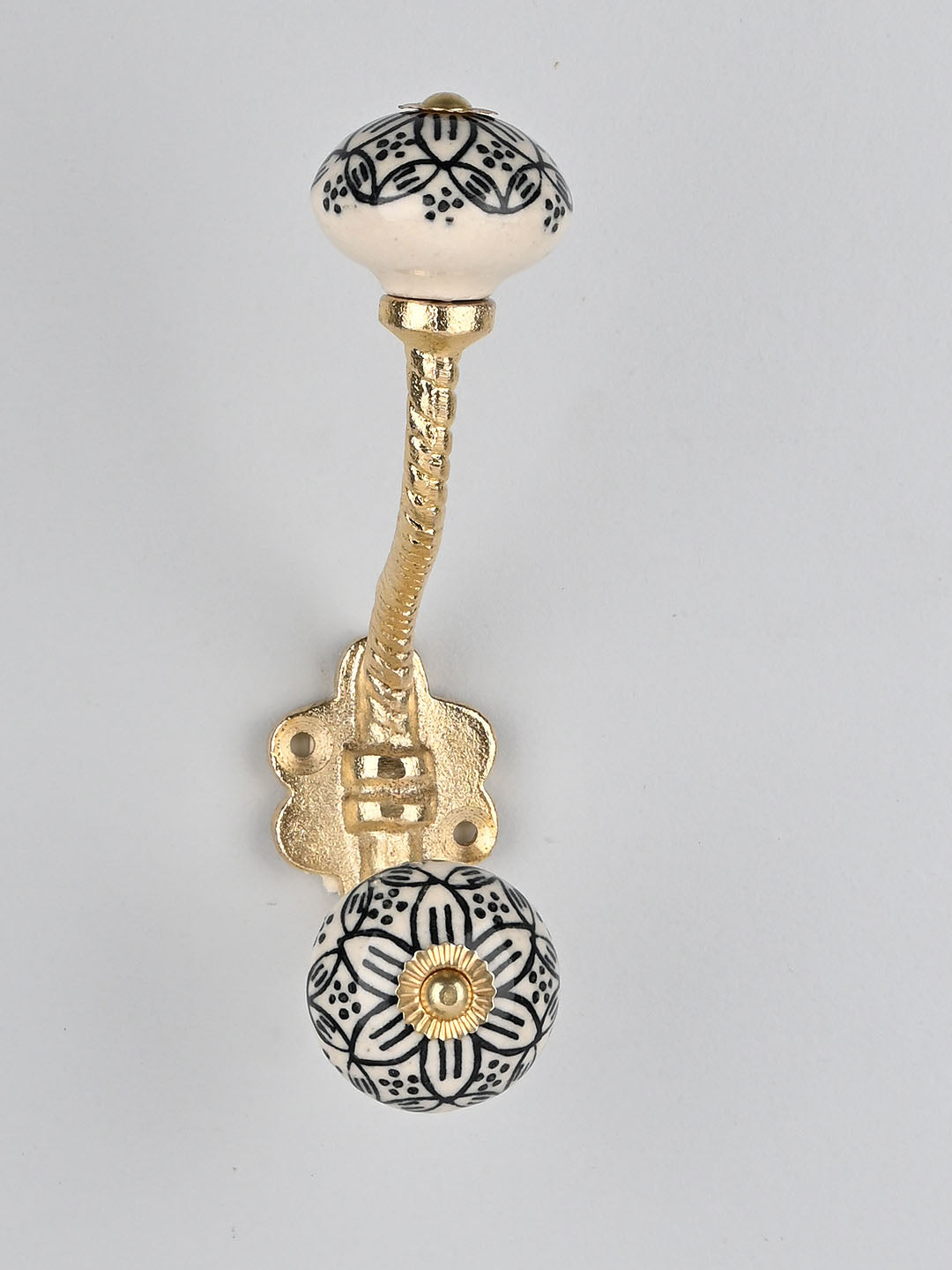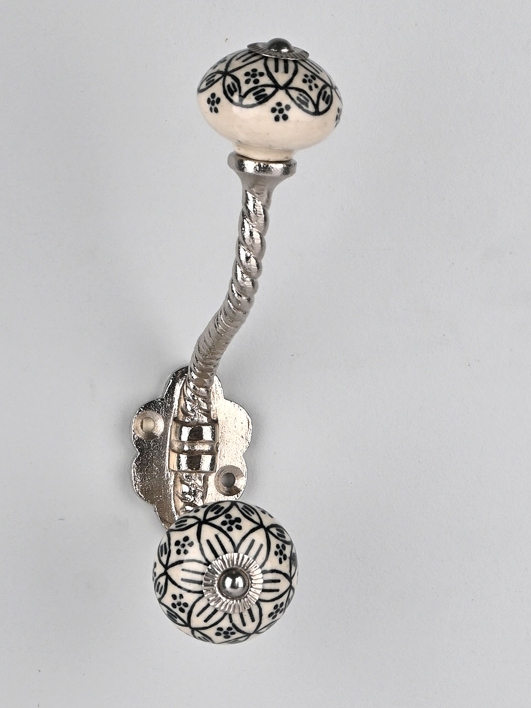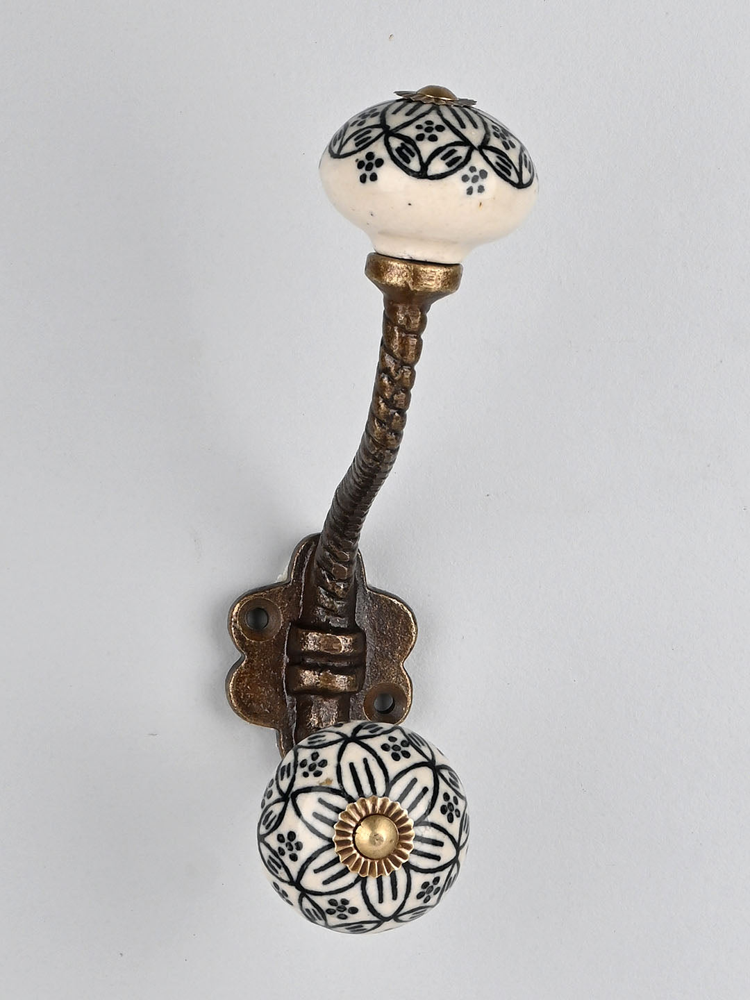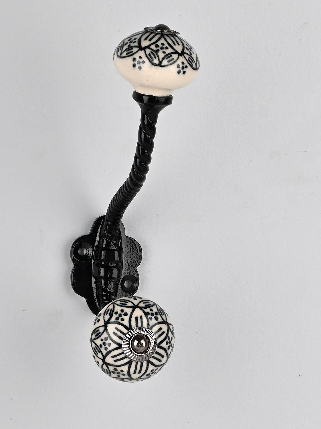 White Ceramic Knob Black Design With Metal Wall Hanger