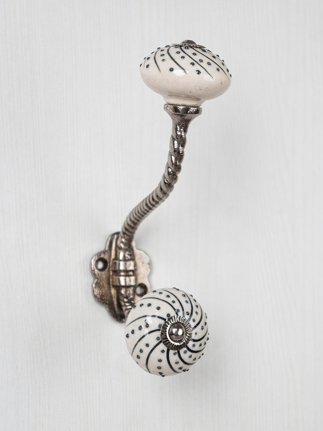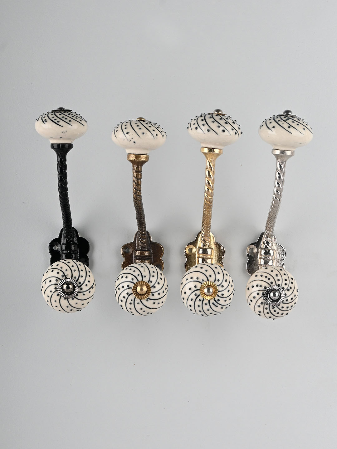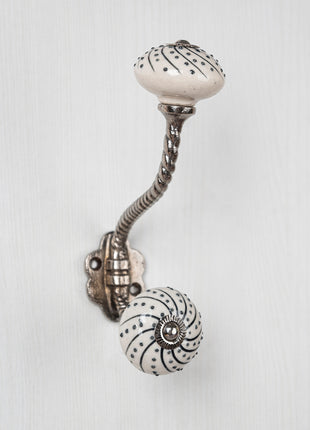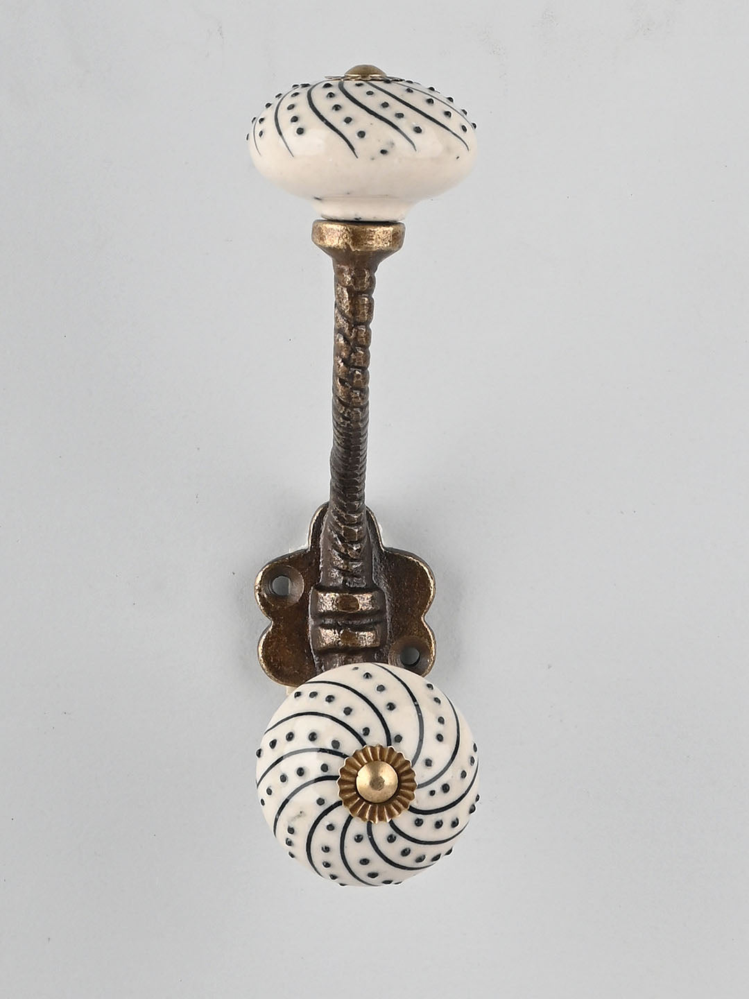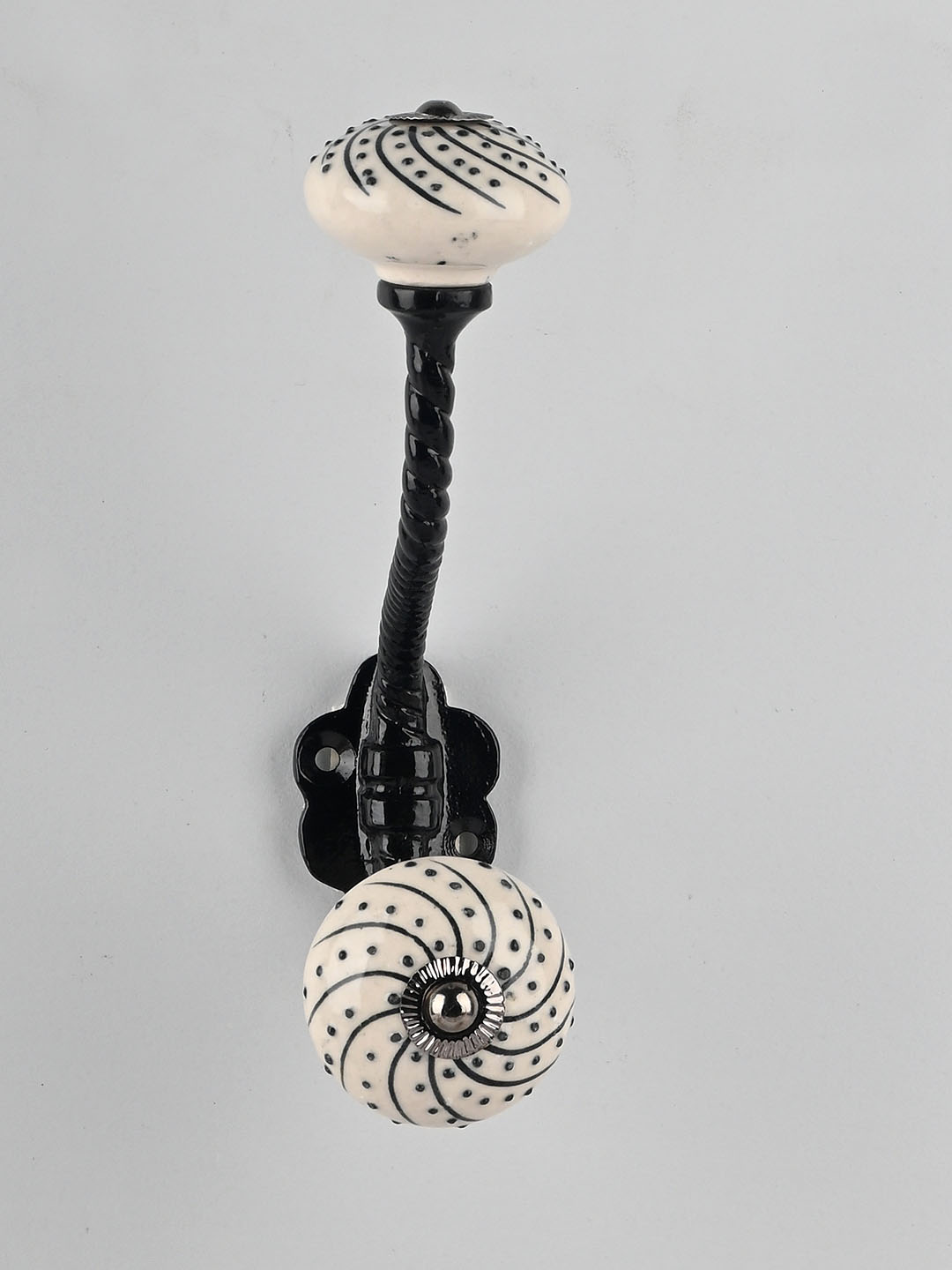 White Ceramic Knob With Black Design With Metal Wall Hanger