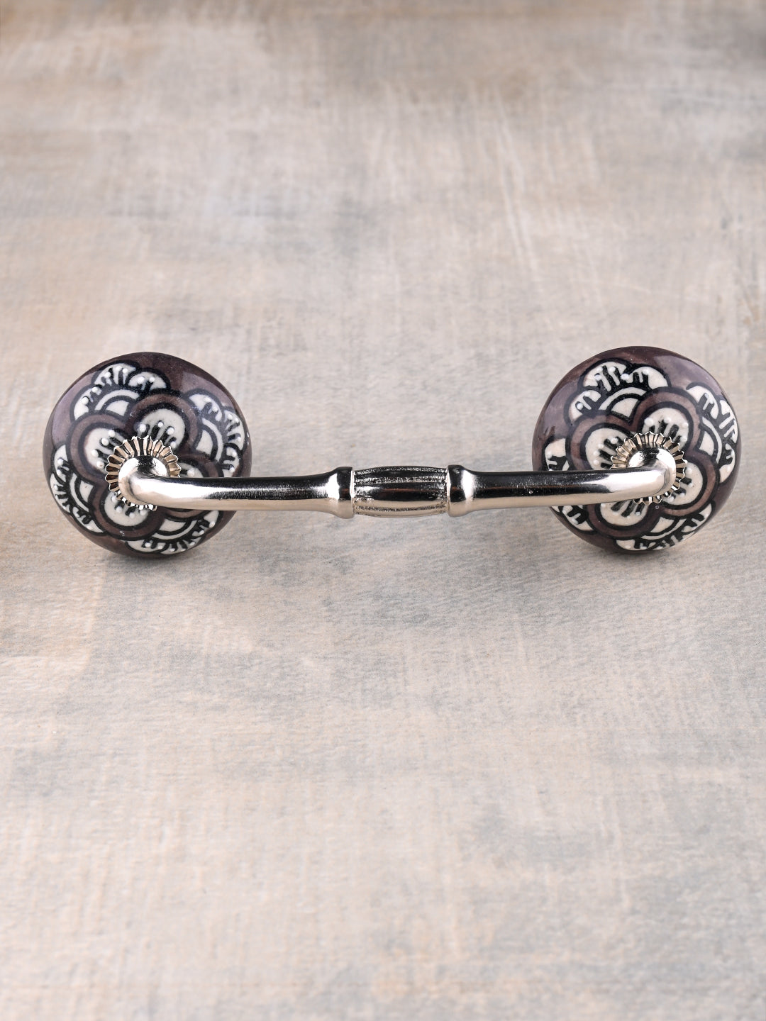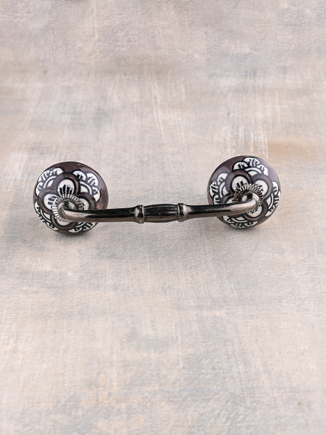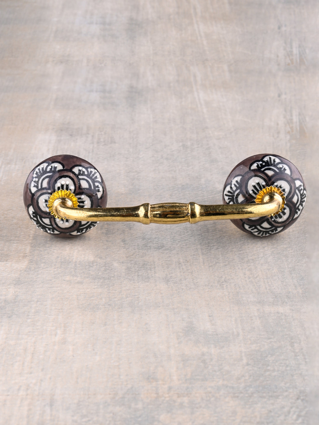 White Ceramic Wardrobe Cabinet Pull With Brown Designer Print