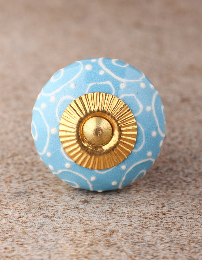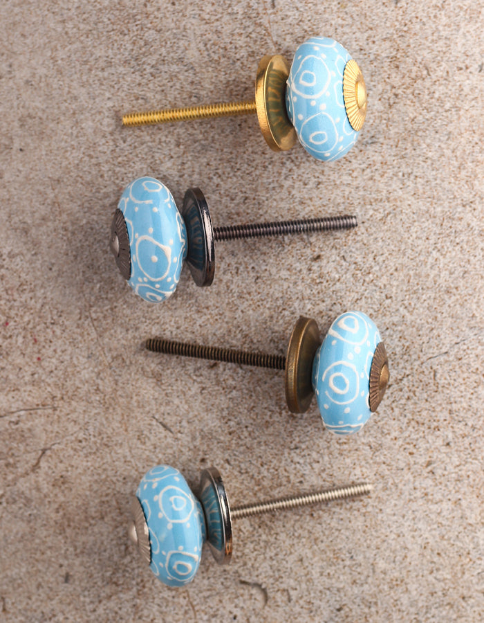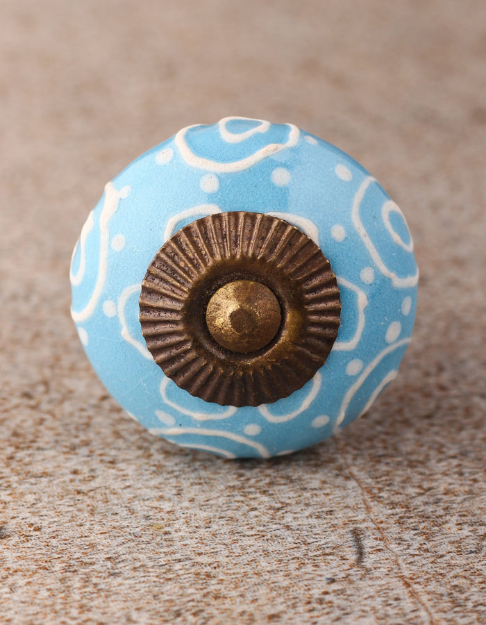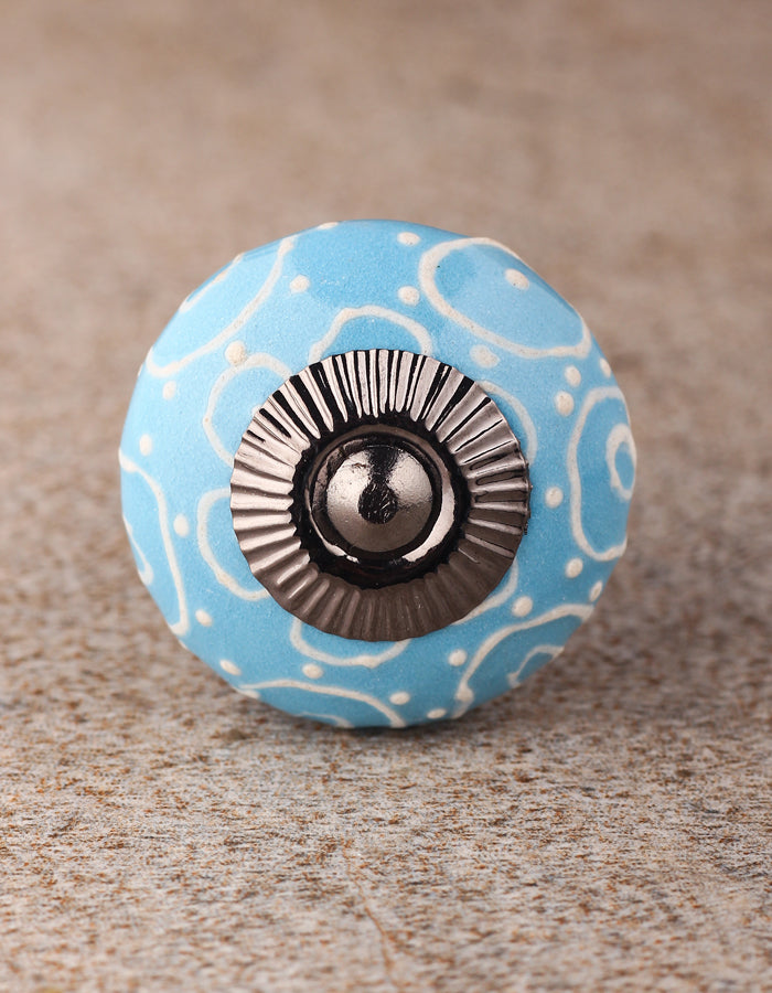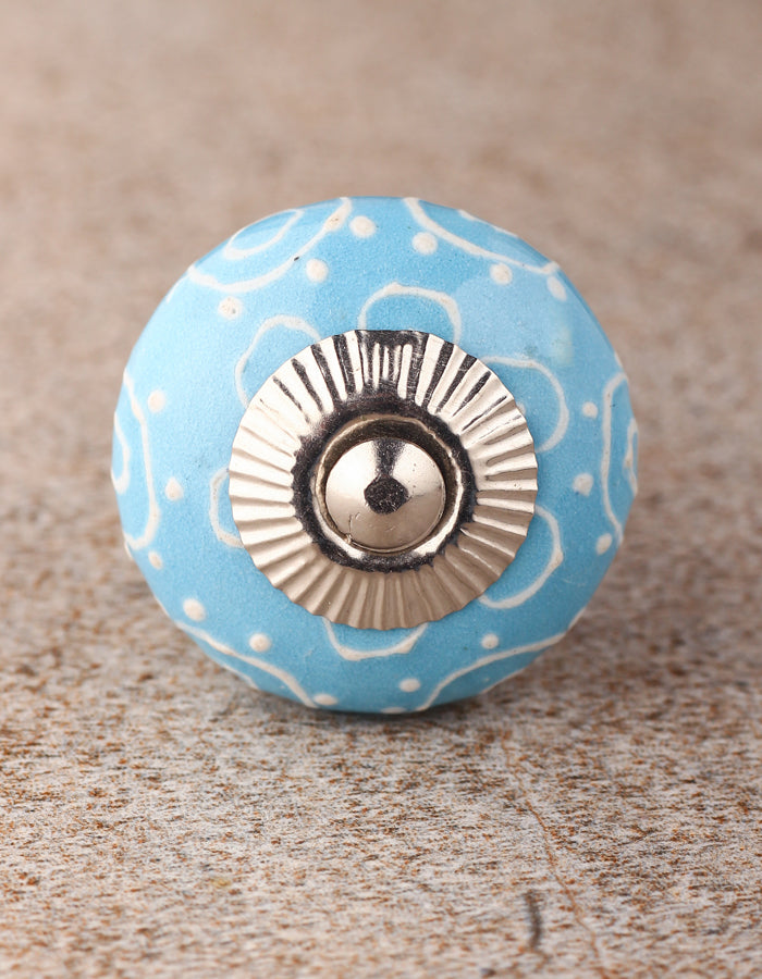 White Cracked Embossed Design On Turquoise Base Cabinet Knob