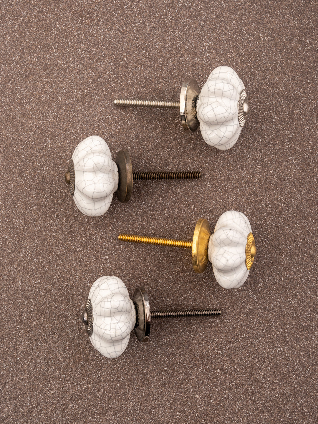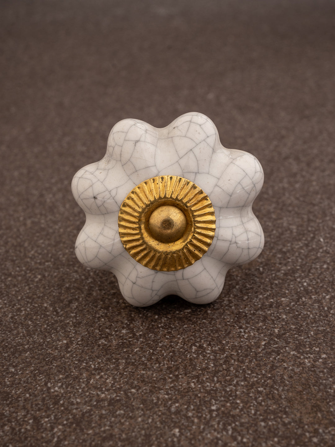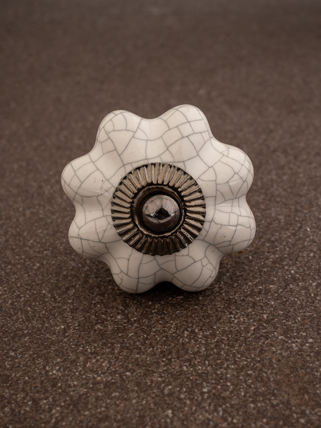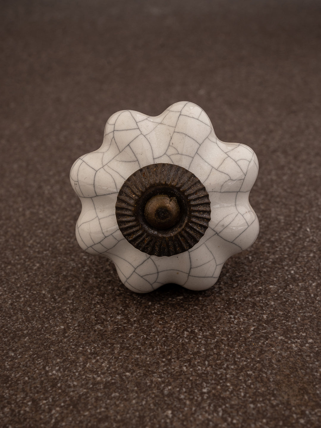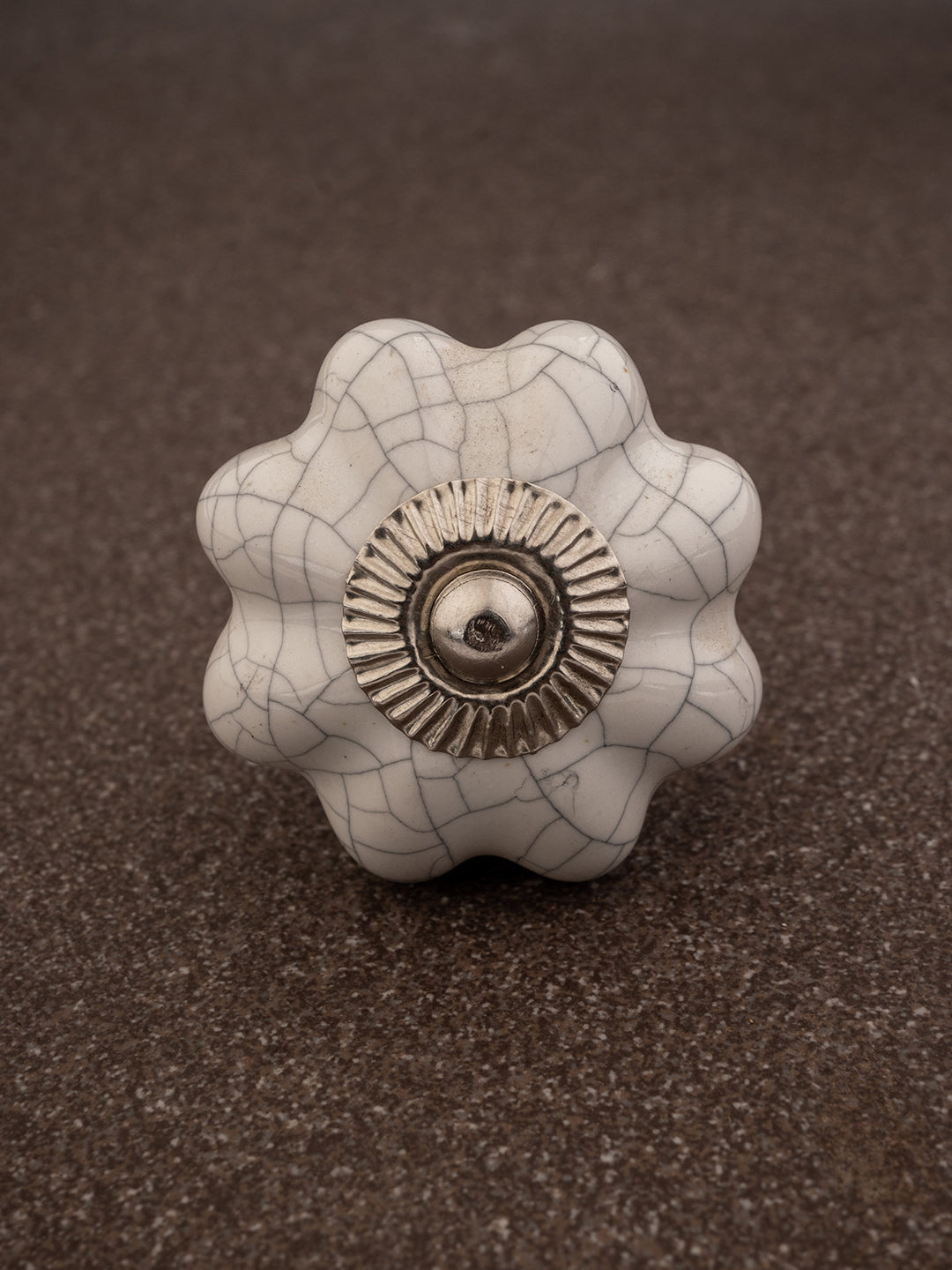 White Cracked Flower Shaped Ceramic Cabinet Knob