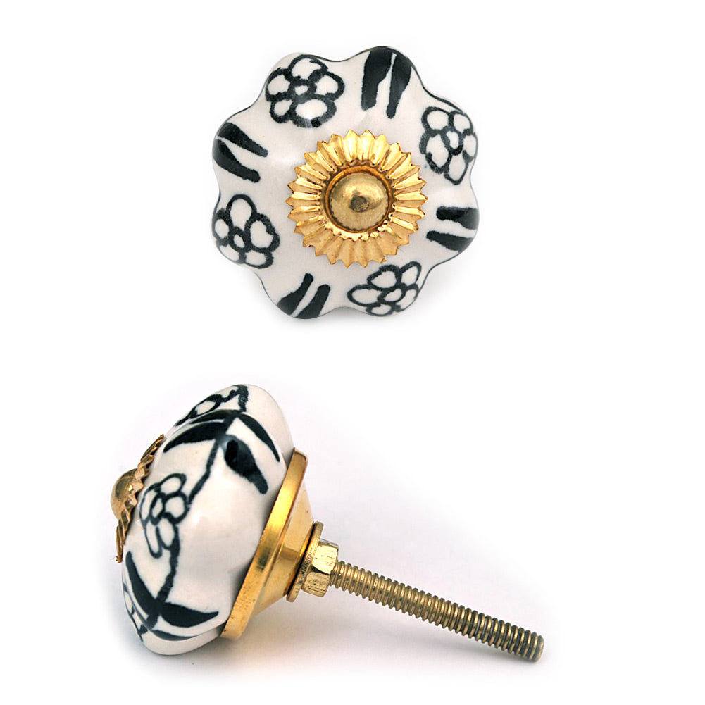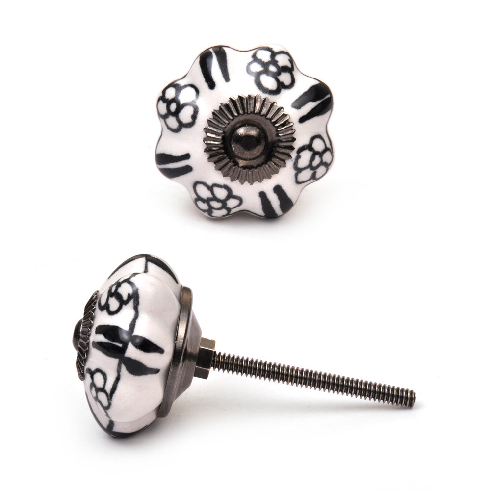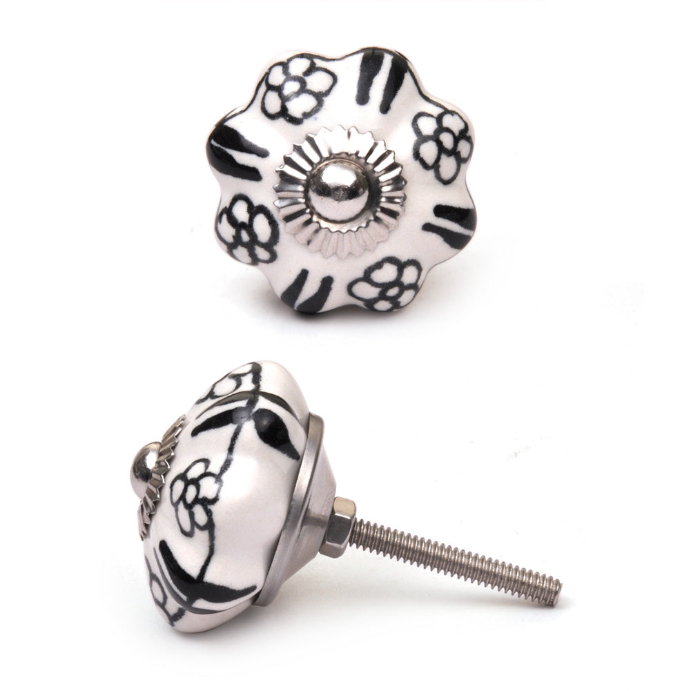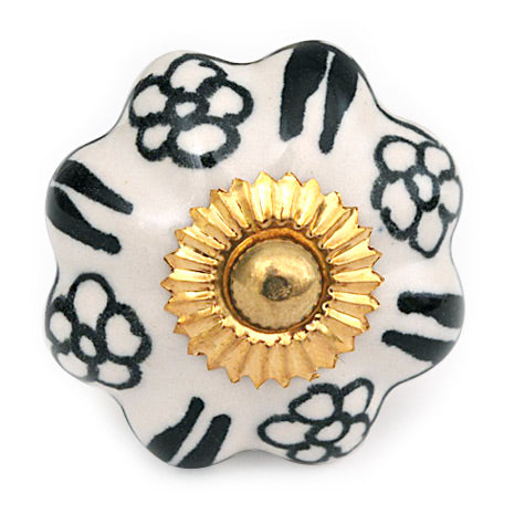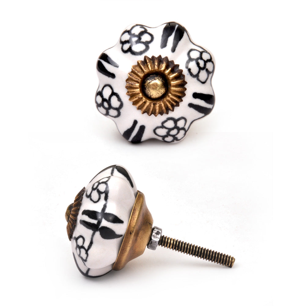 White Flower Shaped Dresser Cabinet Knob With Black Flowers