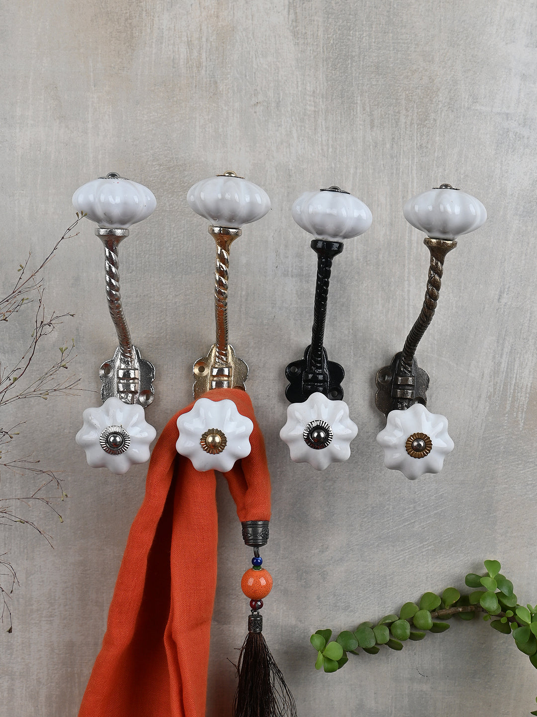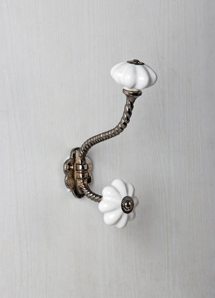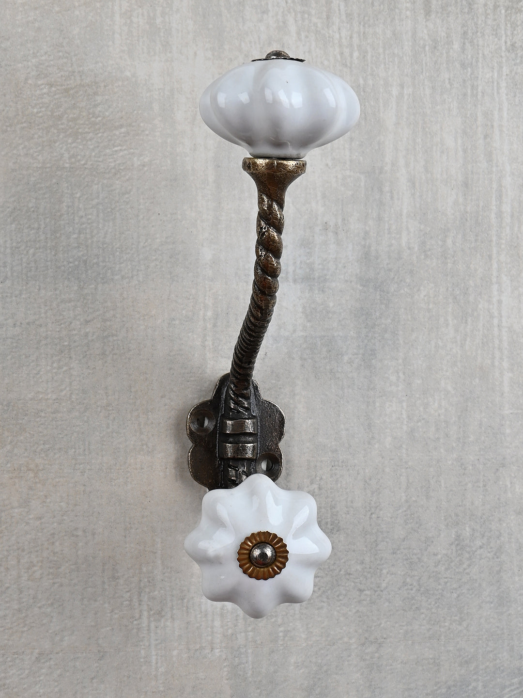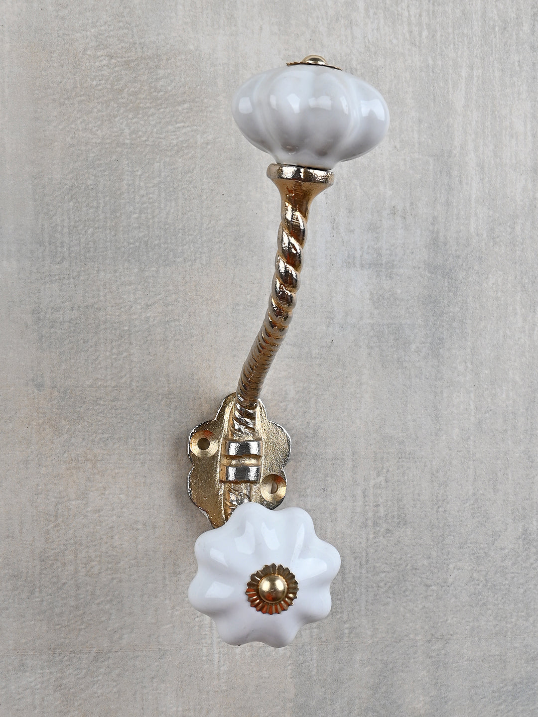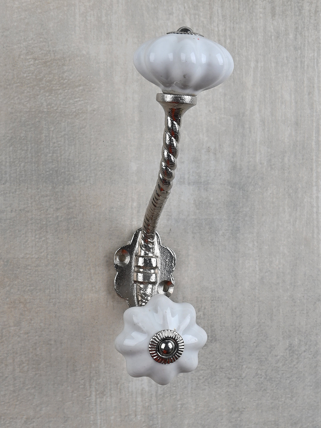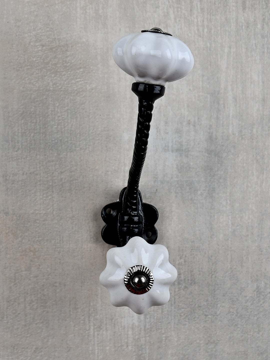 White Flower Shaped Dresser Cabinet Knob With Metal Wall Hanger