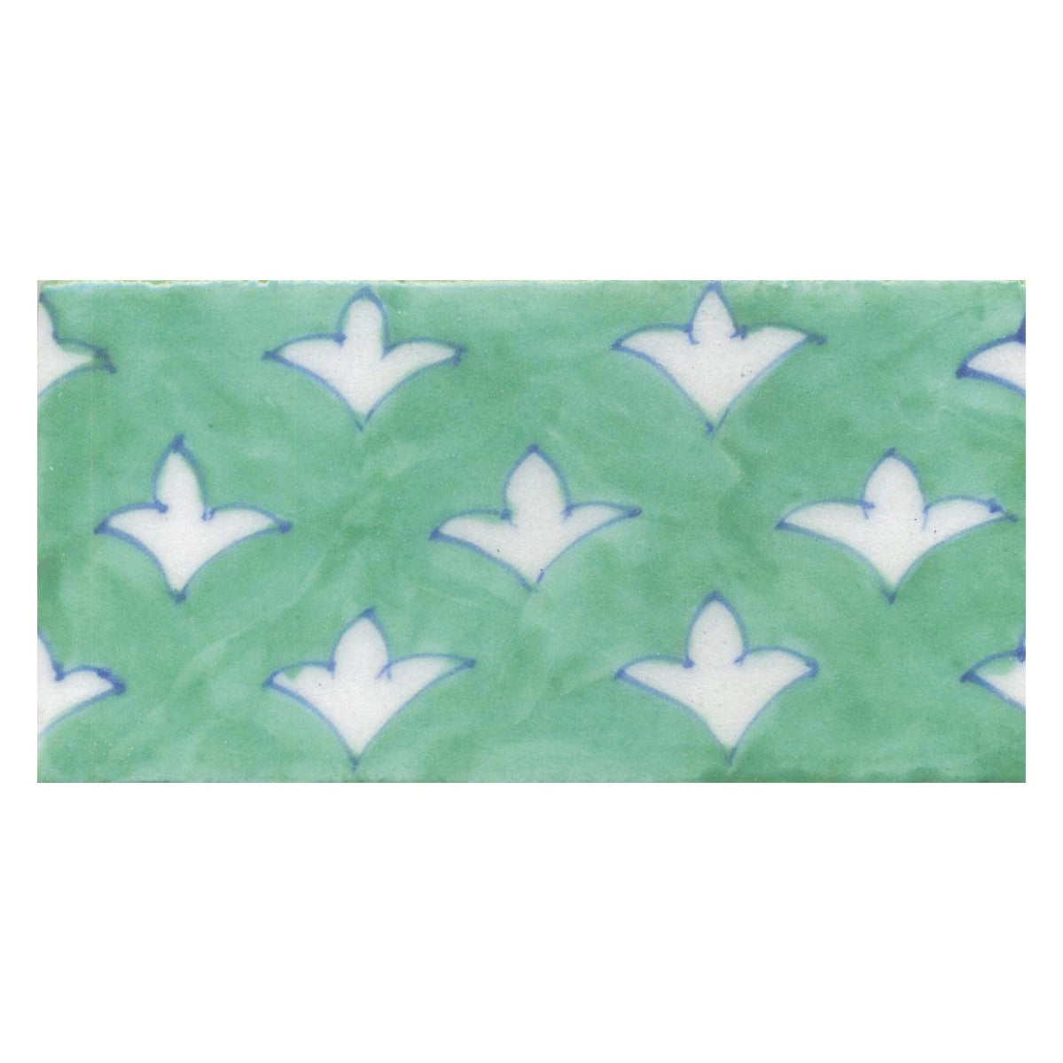 White Flowers and Aqua Green Base Tile