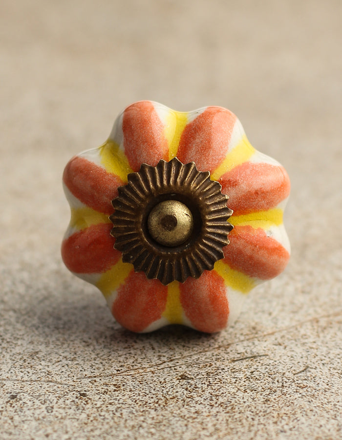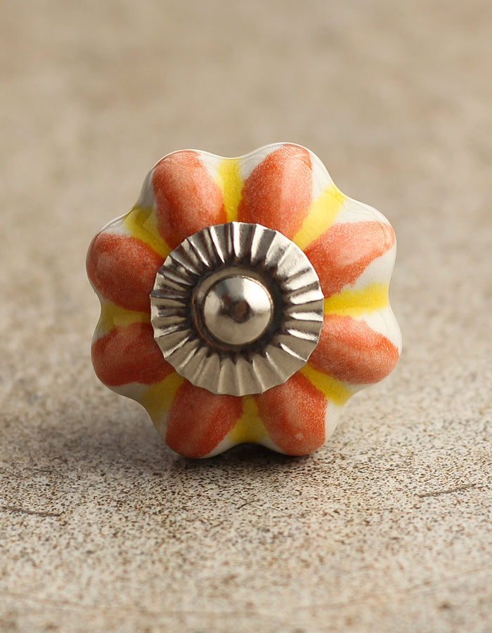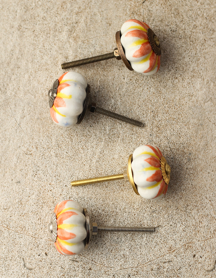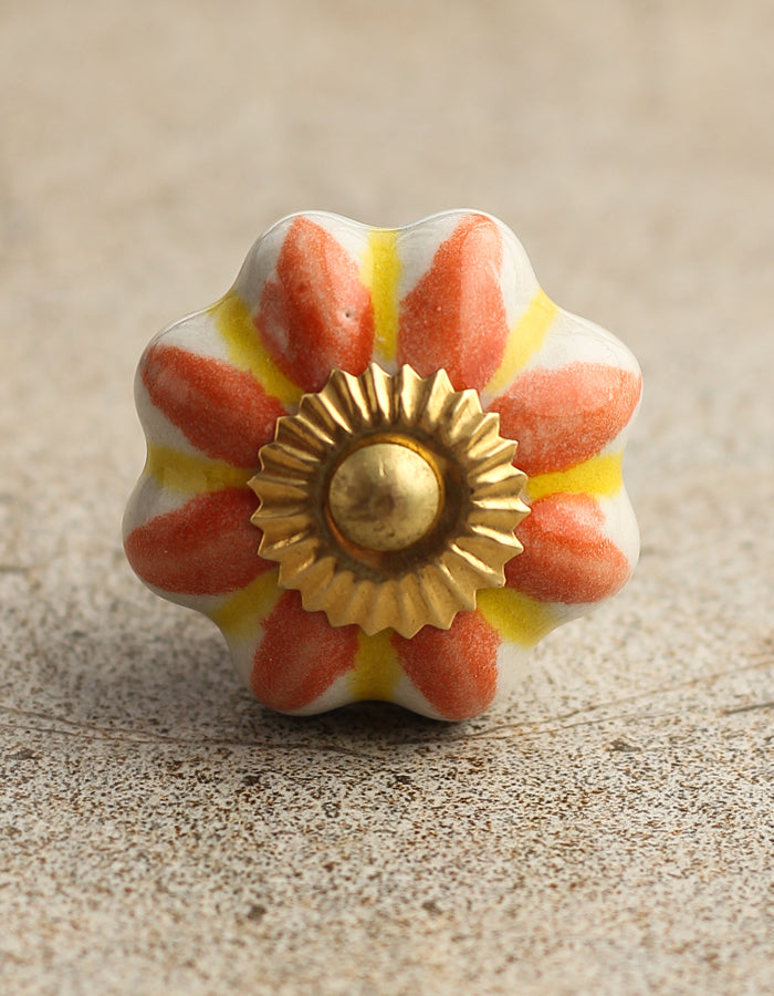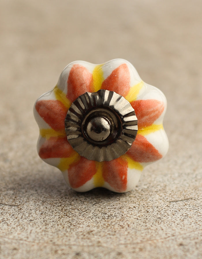 White Handpainted Ceramic Door Knob With Red And Yellow Flower