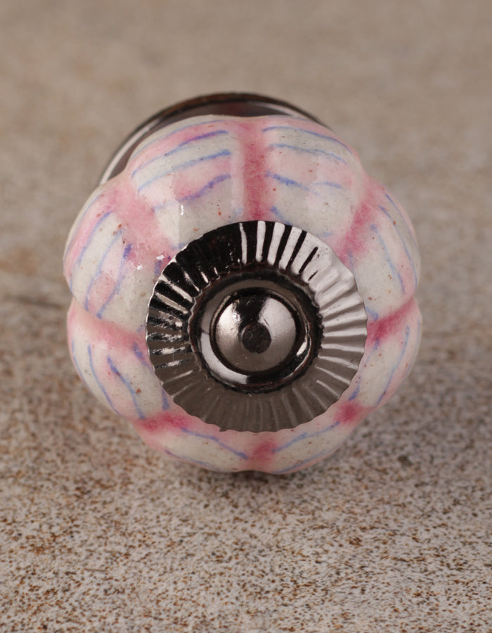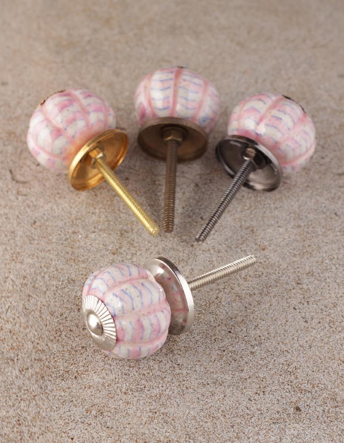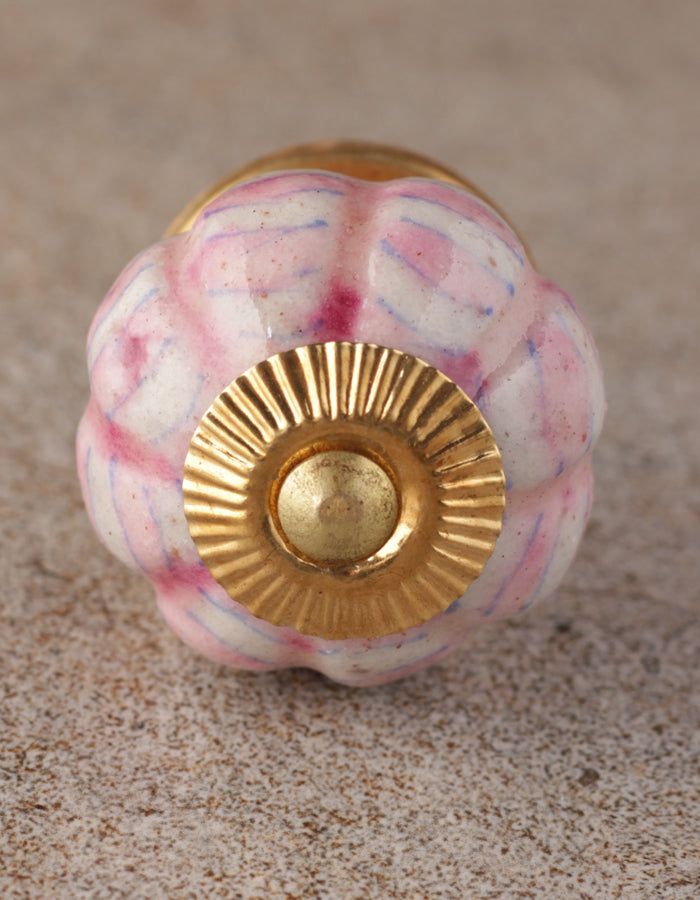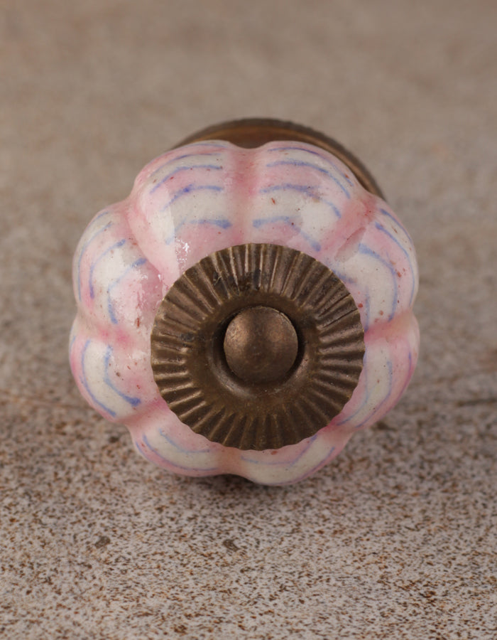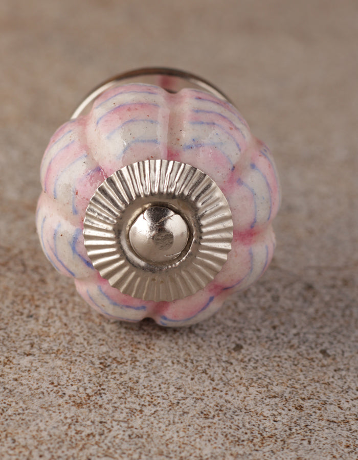 White Melon Shaped Ceramic Door Knob With Pink Spiral Design