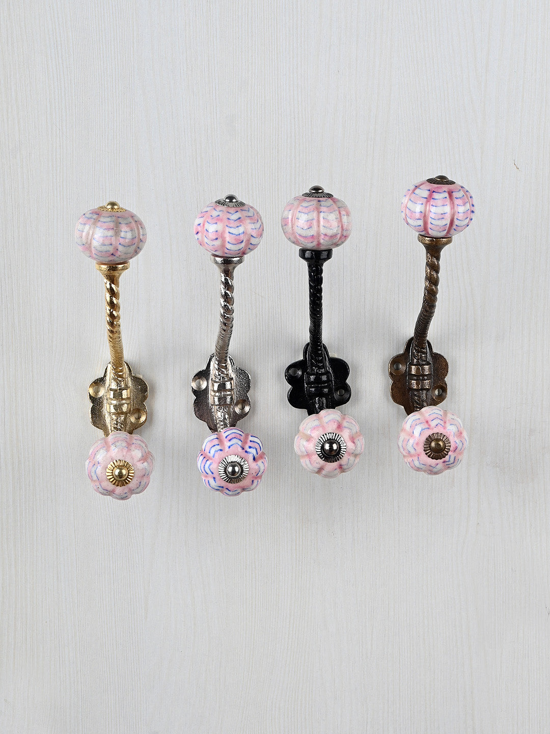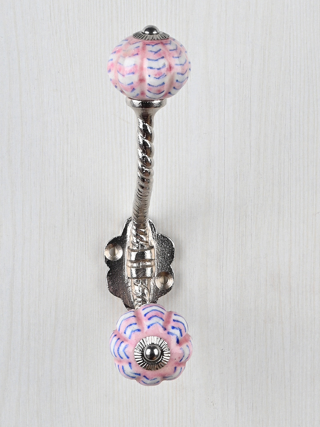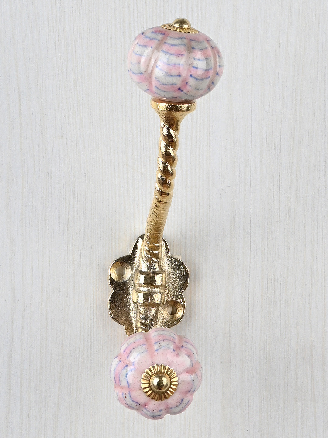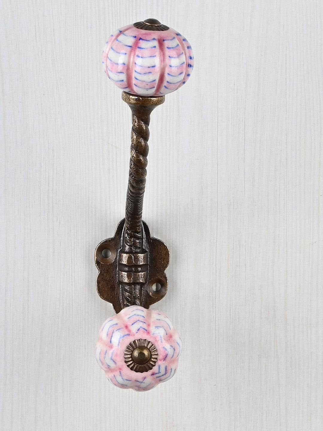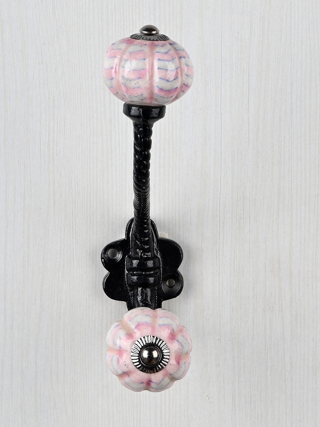 White Melon Shaped Knob Pink Spiral Design With Metal Wall Hanger