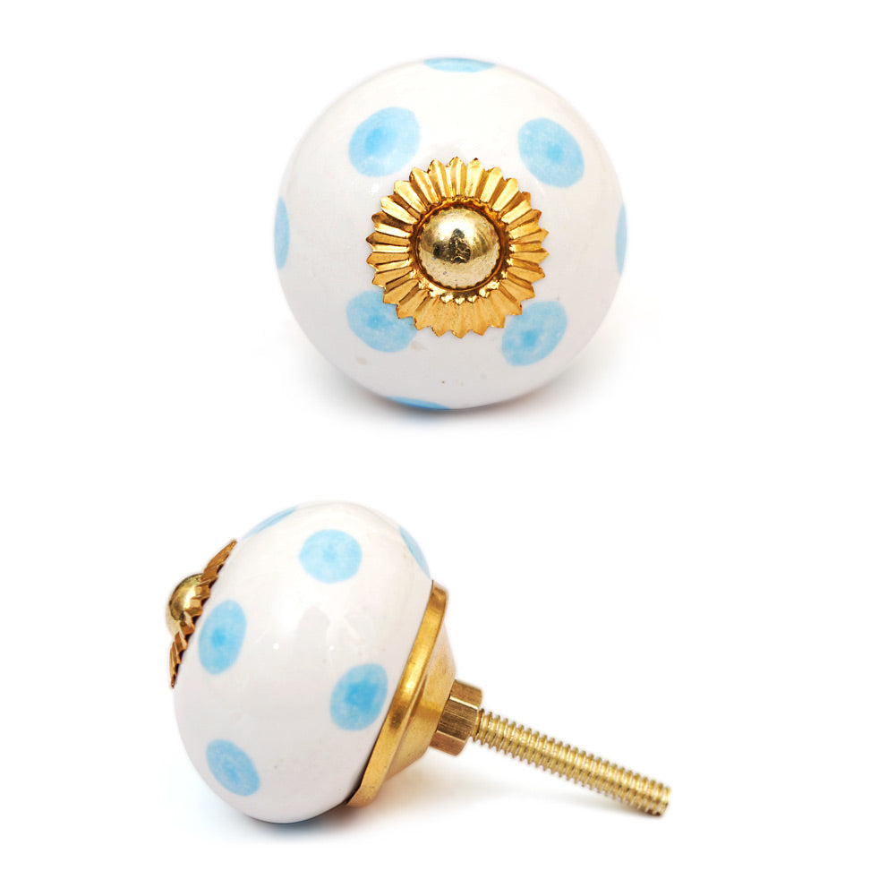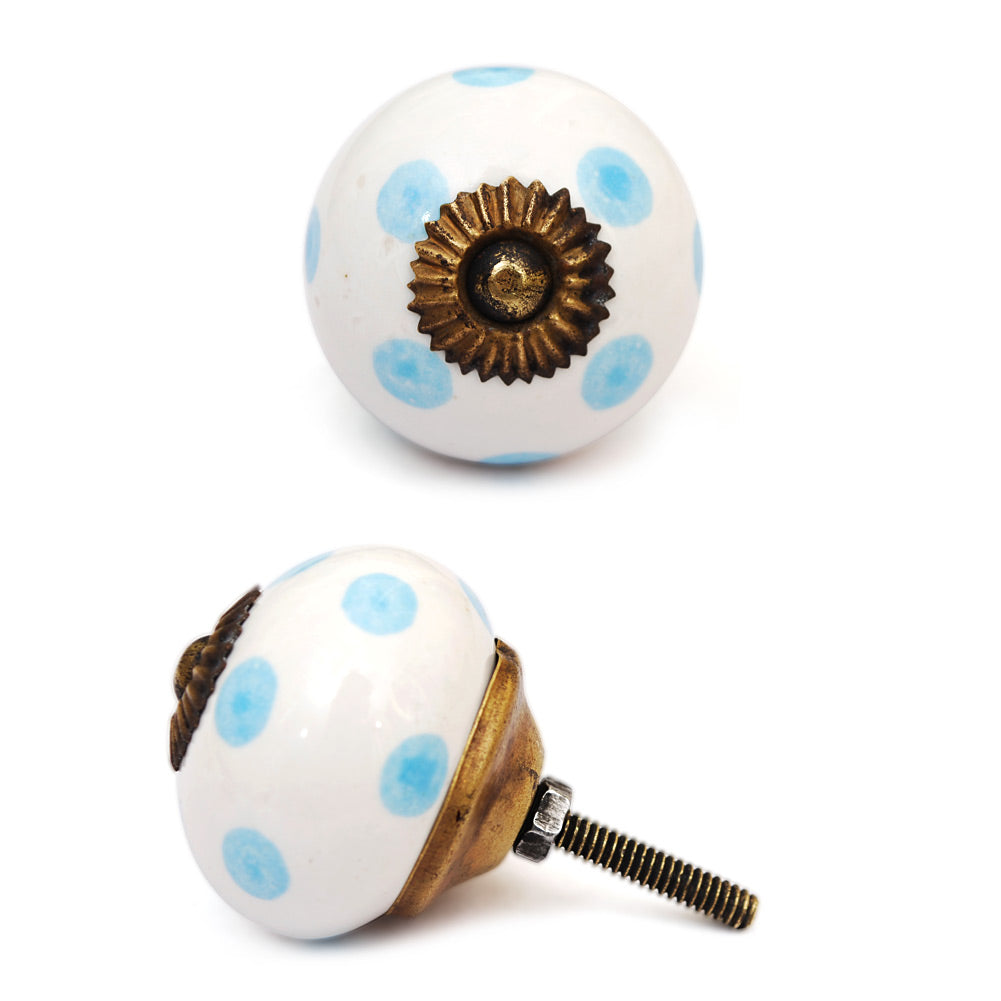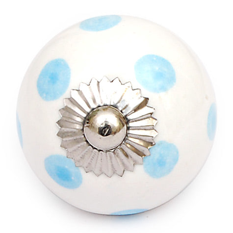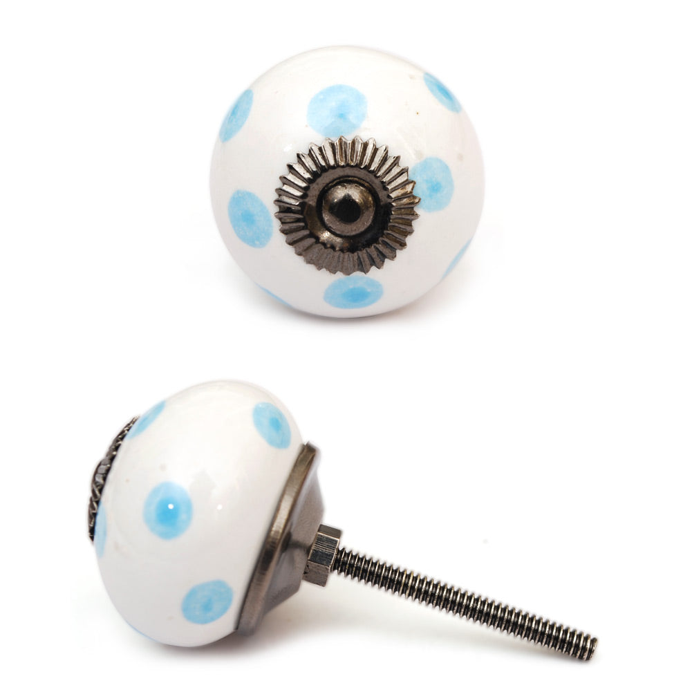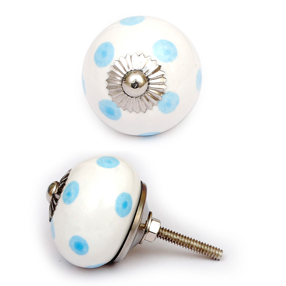 White Round Cabinet Drawer Knob With Turquoise Polka Dots