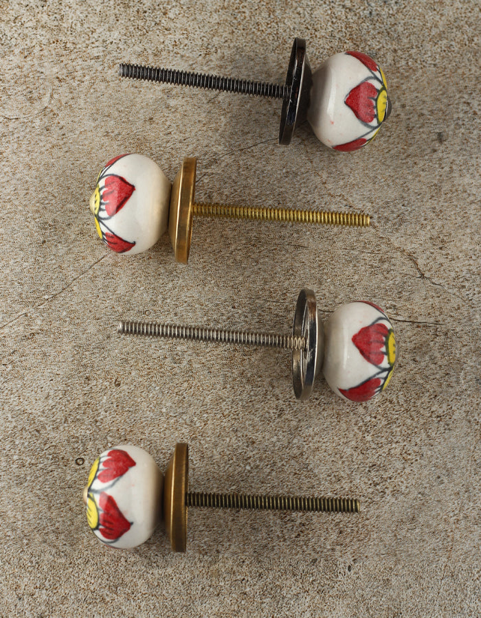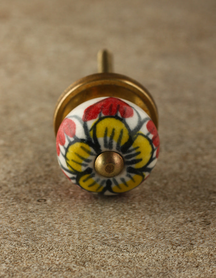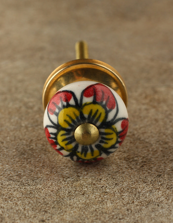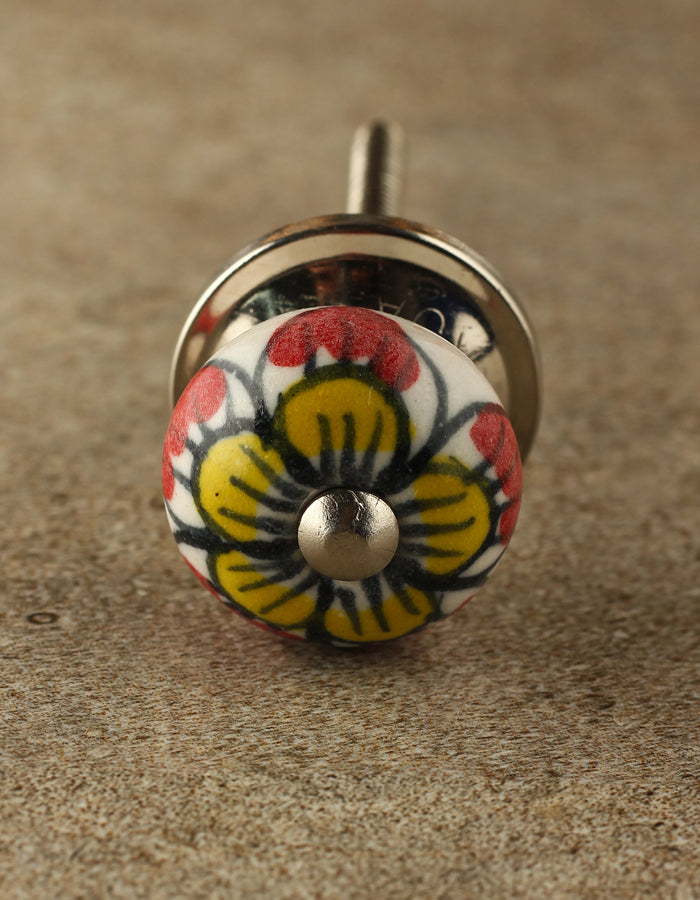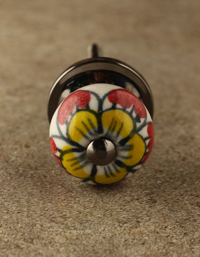 White Round Ceramic Drawer Knob With Hand Painted Flowers