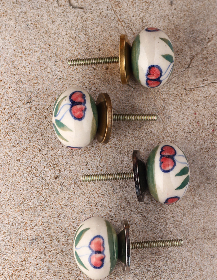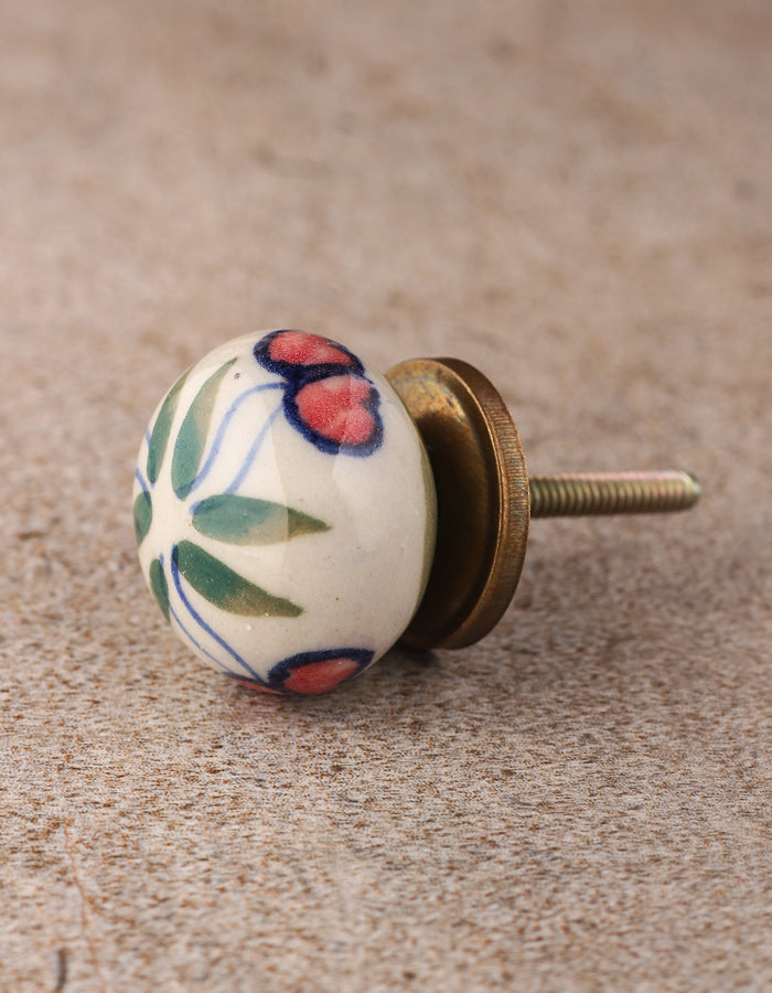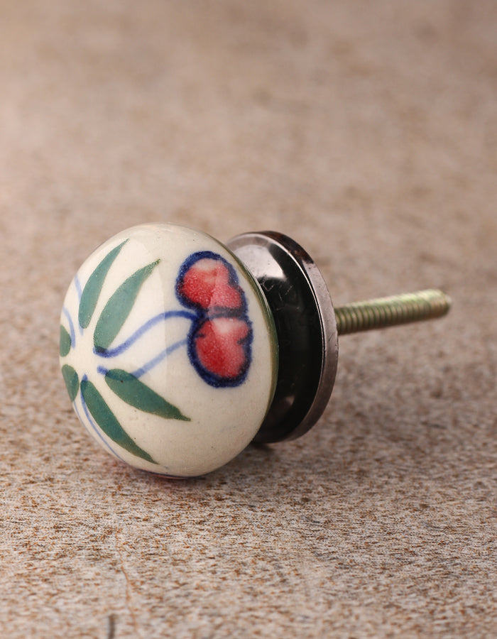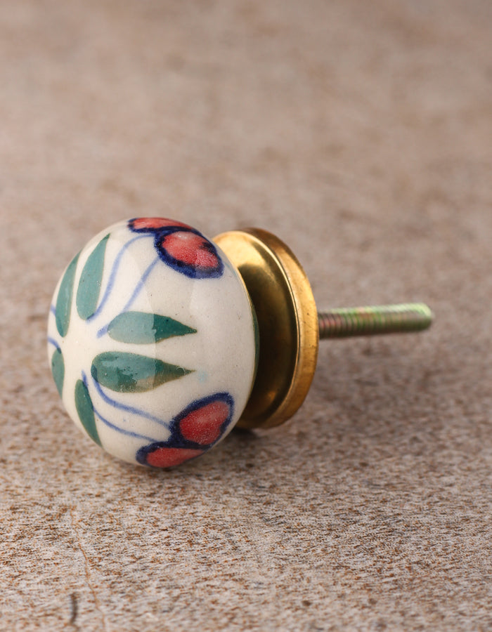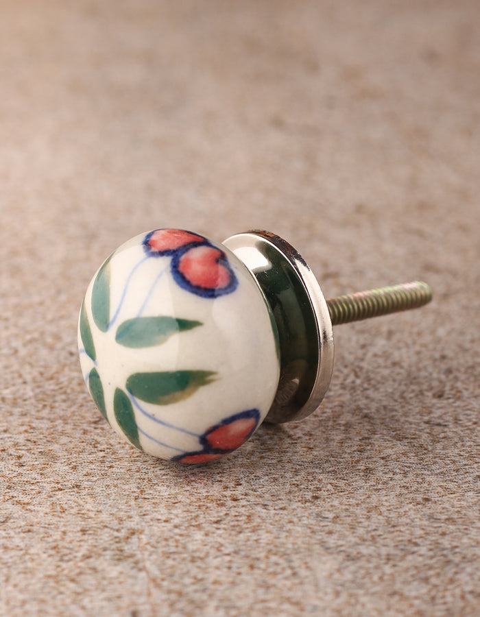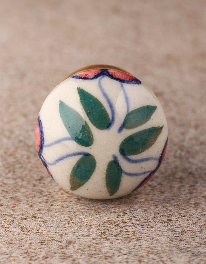 White Round Ceramic Dresser Cabinet Knob With Multicolor Print