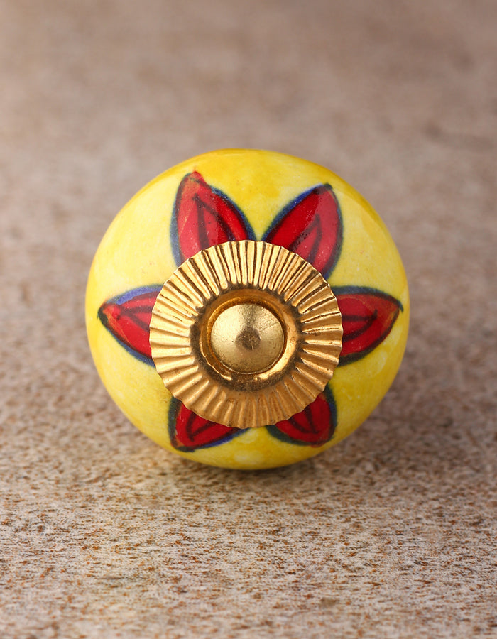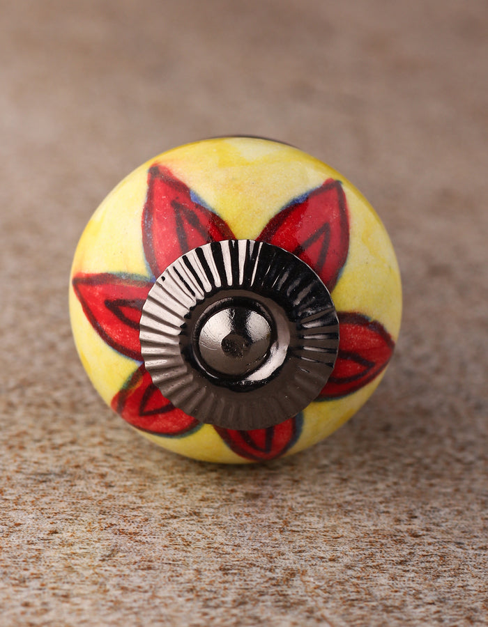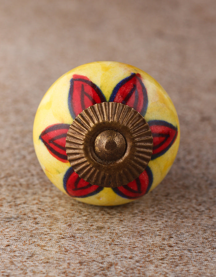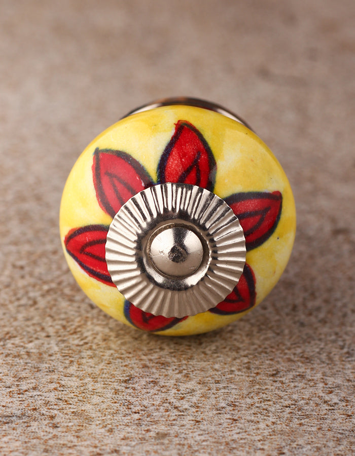 White Round Ceramic Dresser Knob With Red Flower