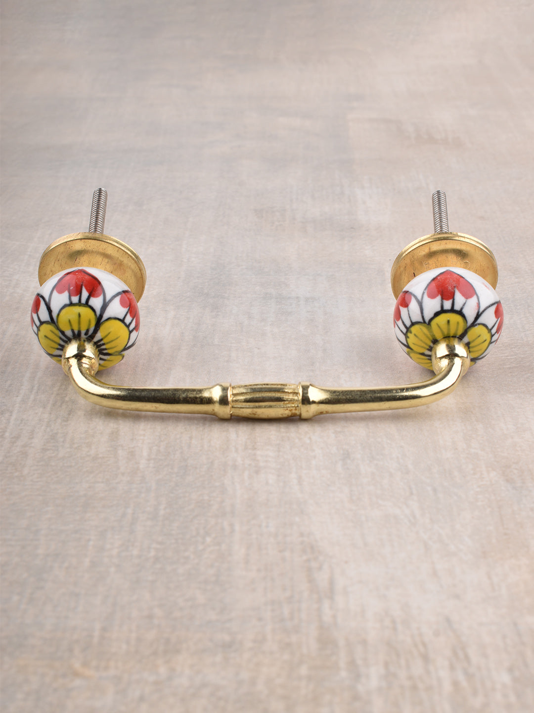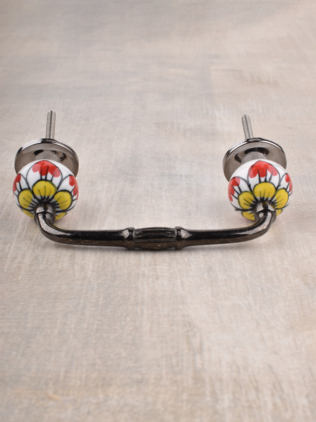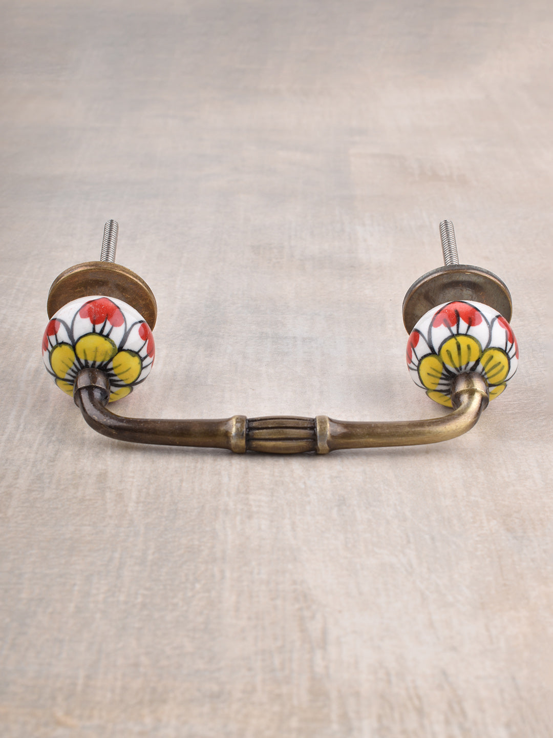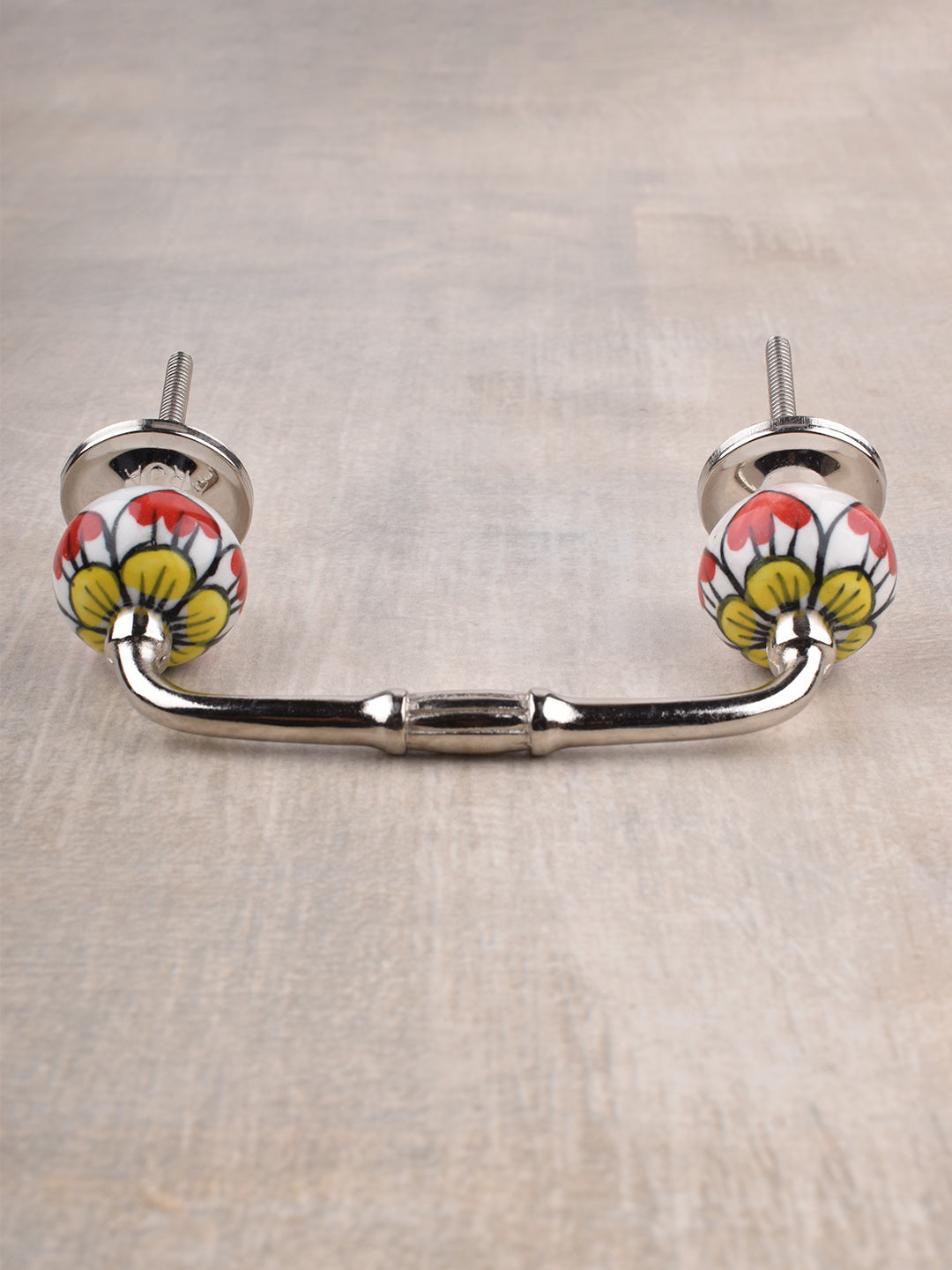 White Round Ceramic Pull Hand Painted With Multicolor Flowers