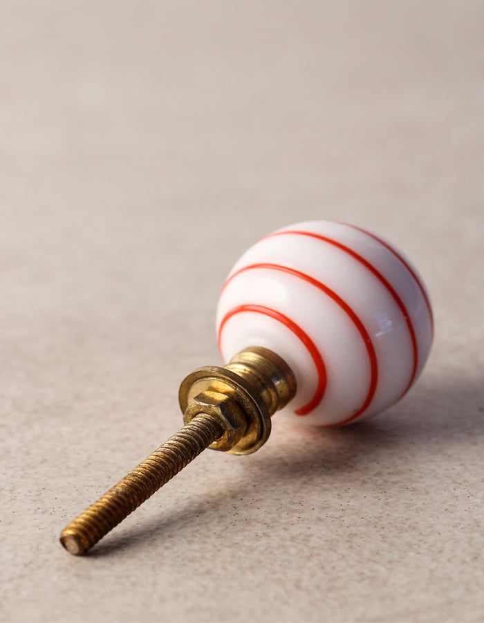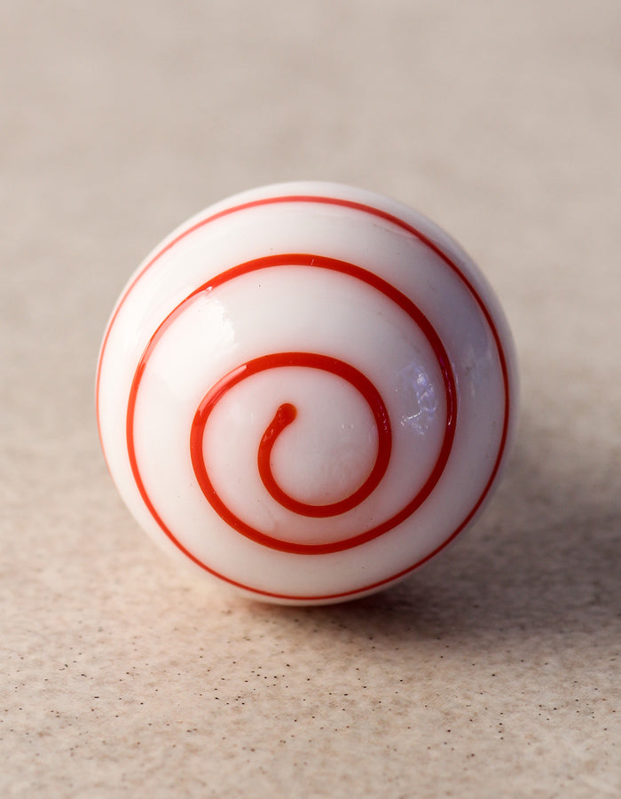 White Round Glass Drawer Cabinet Knob With Red Spiral