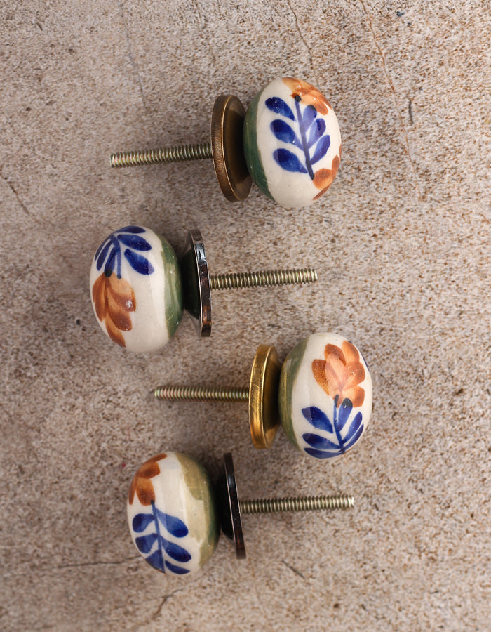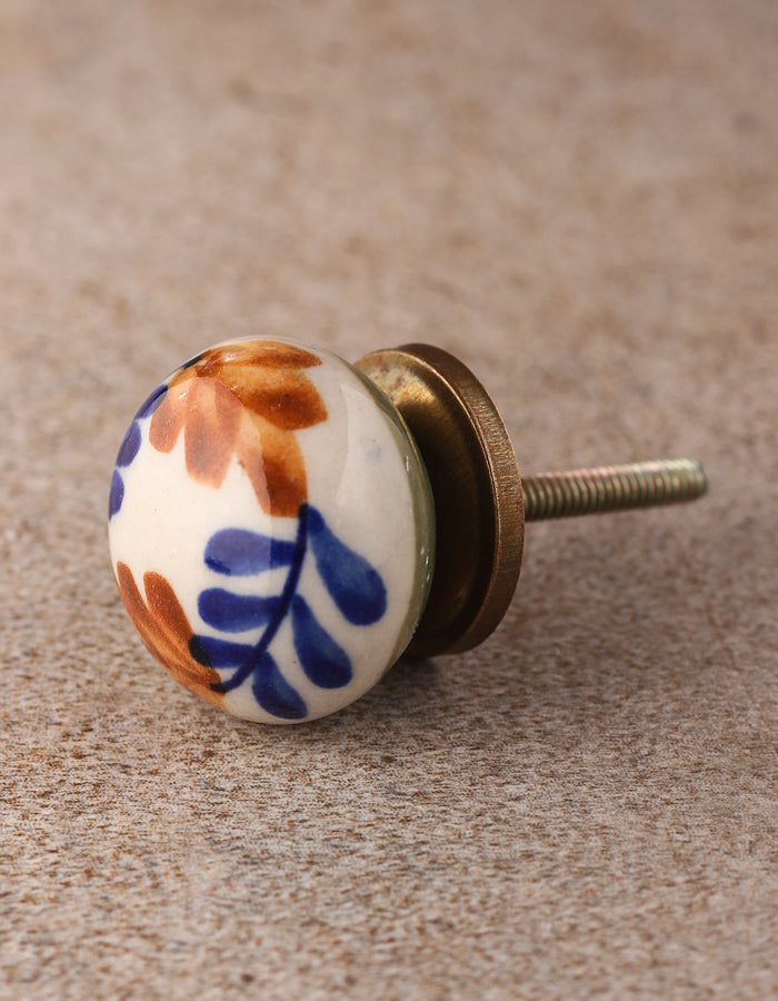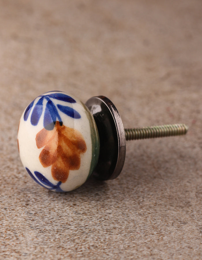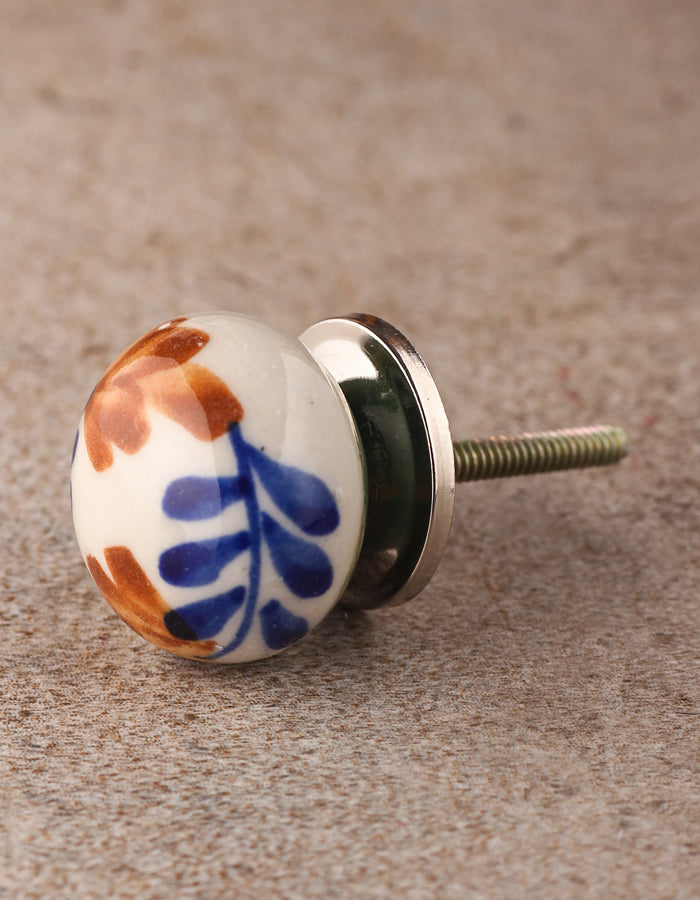White Round Kitchen Cabinet Knob With Multicolor Design
