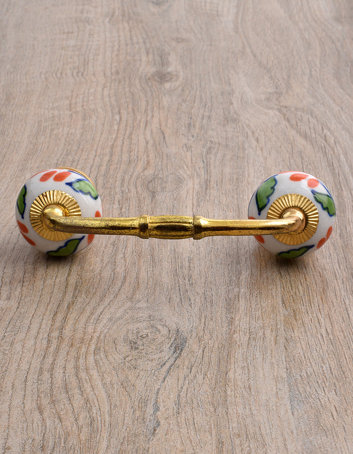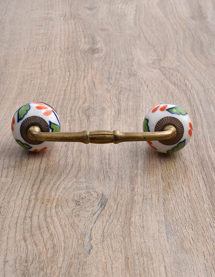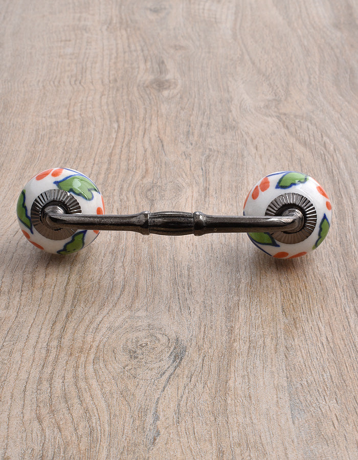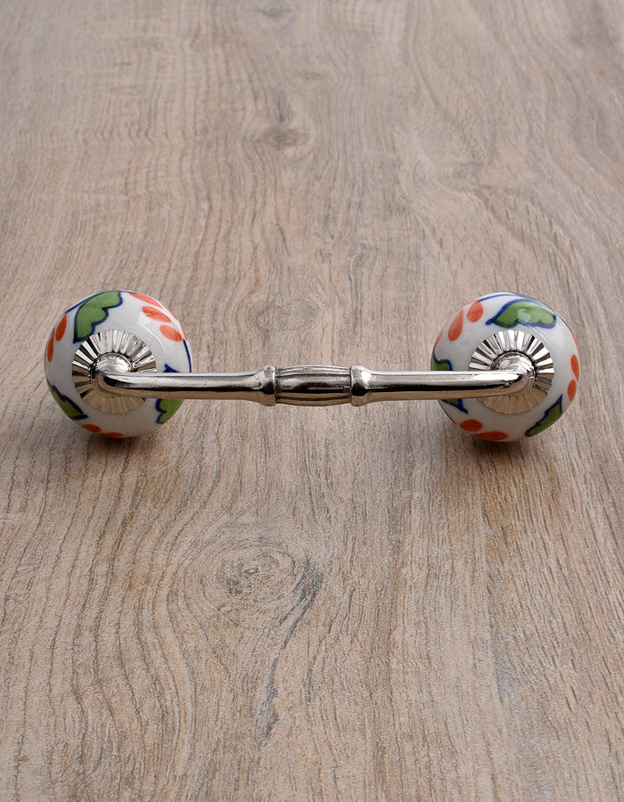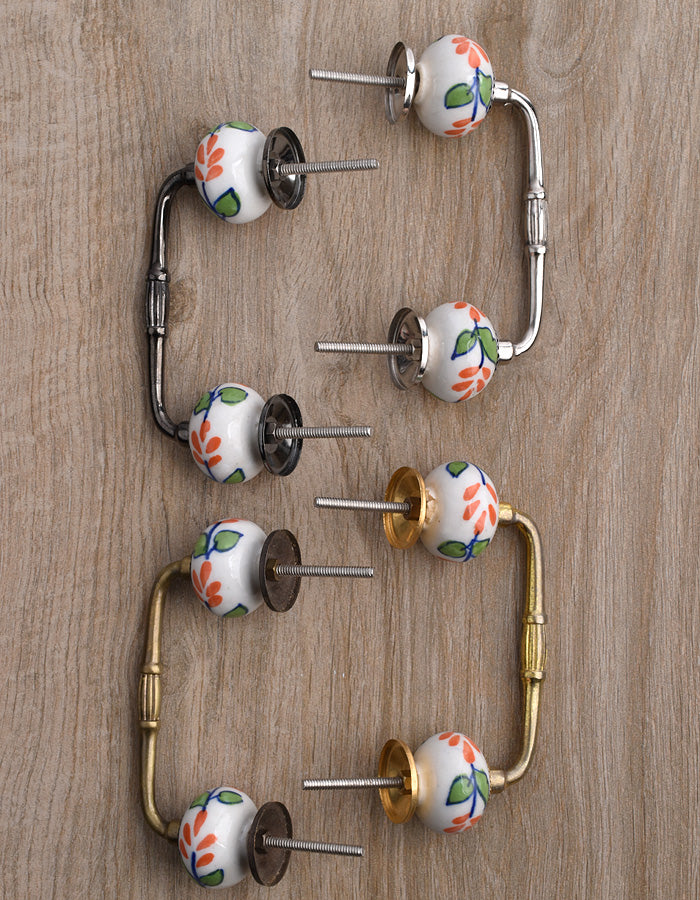 White Round Kitchen Cabinet Pull With Orange Flowers