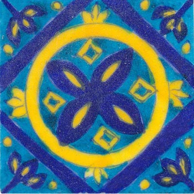 yellow and blue pattern on turquoise tile 3x3
