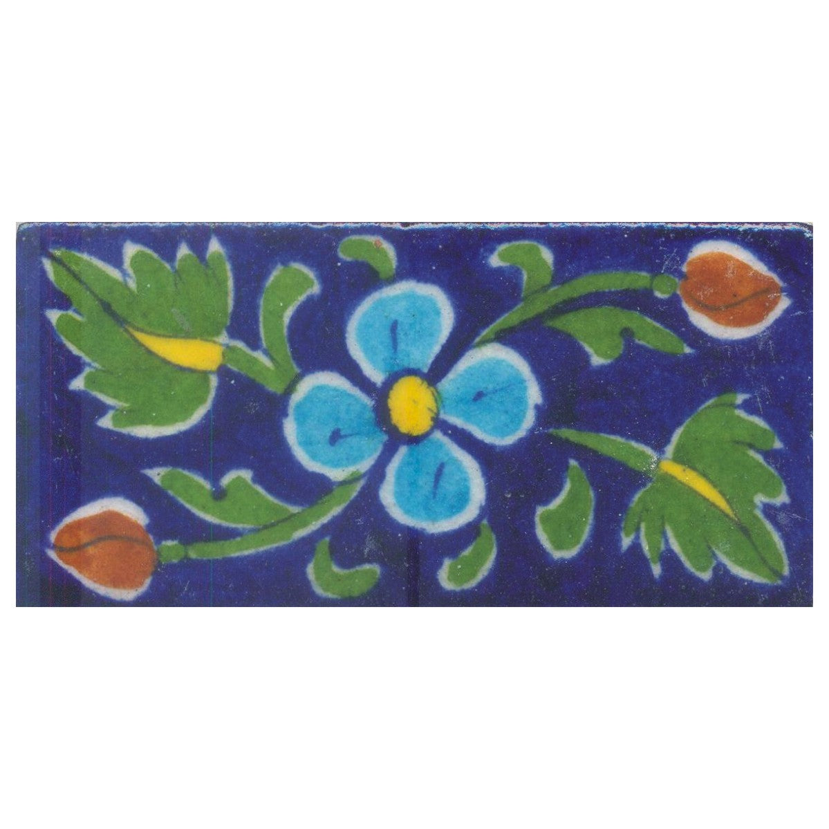 Yellow and Turquoise Flower and Green leaf with Blue Base Tile