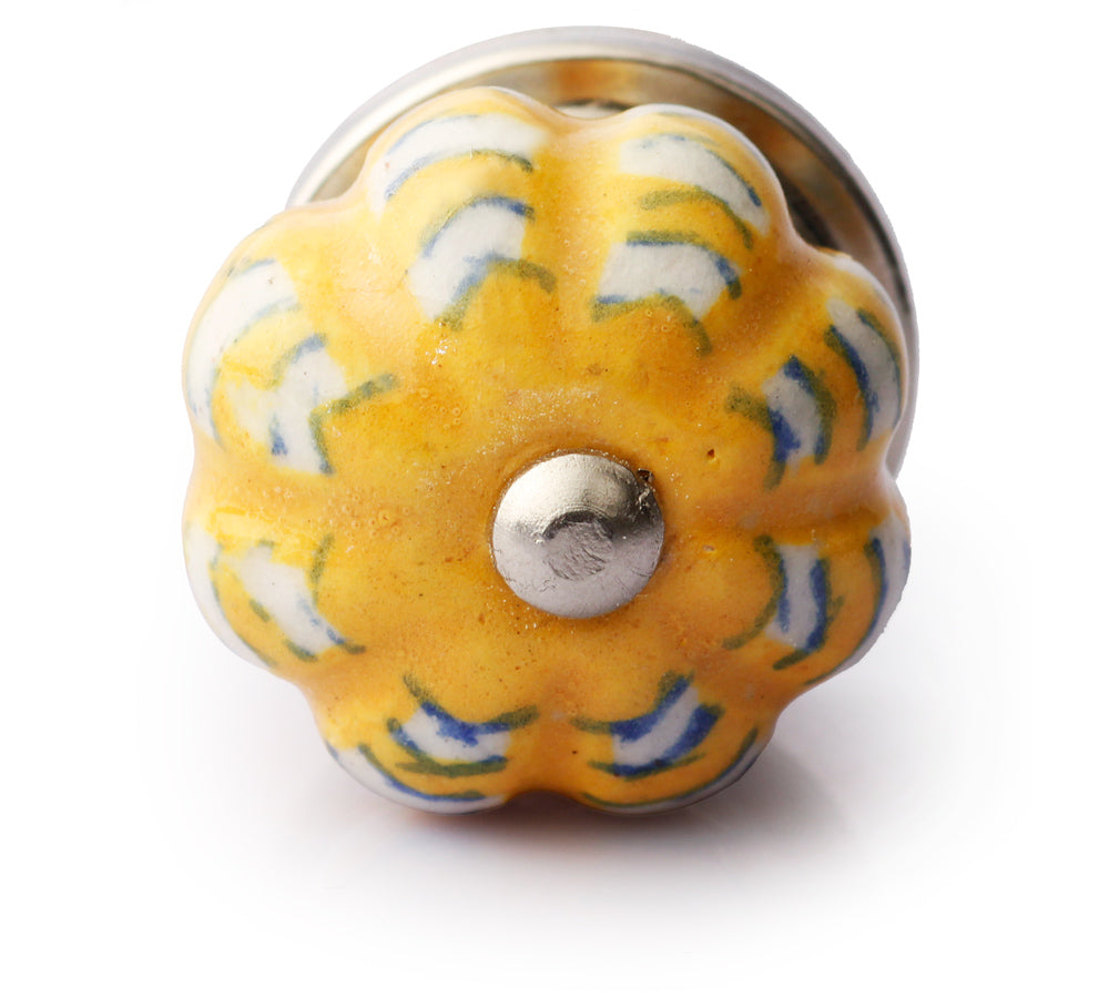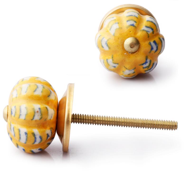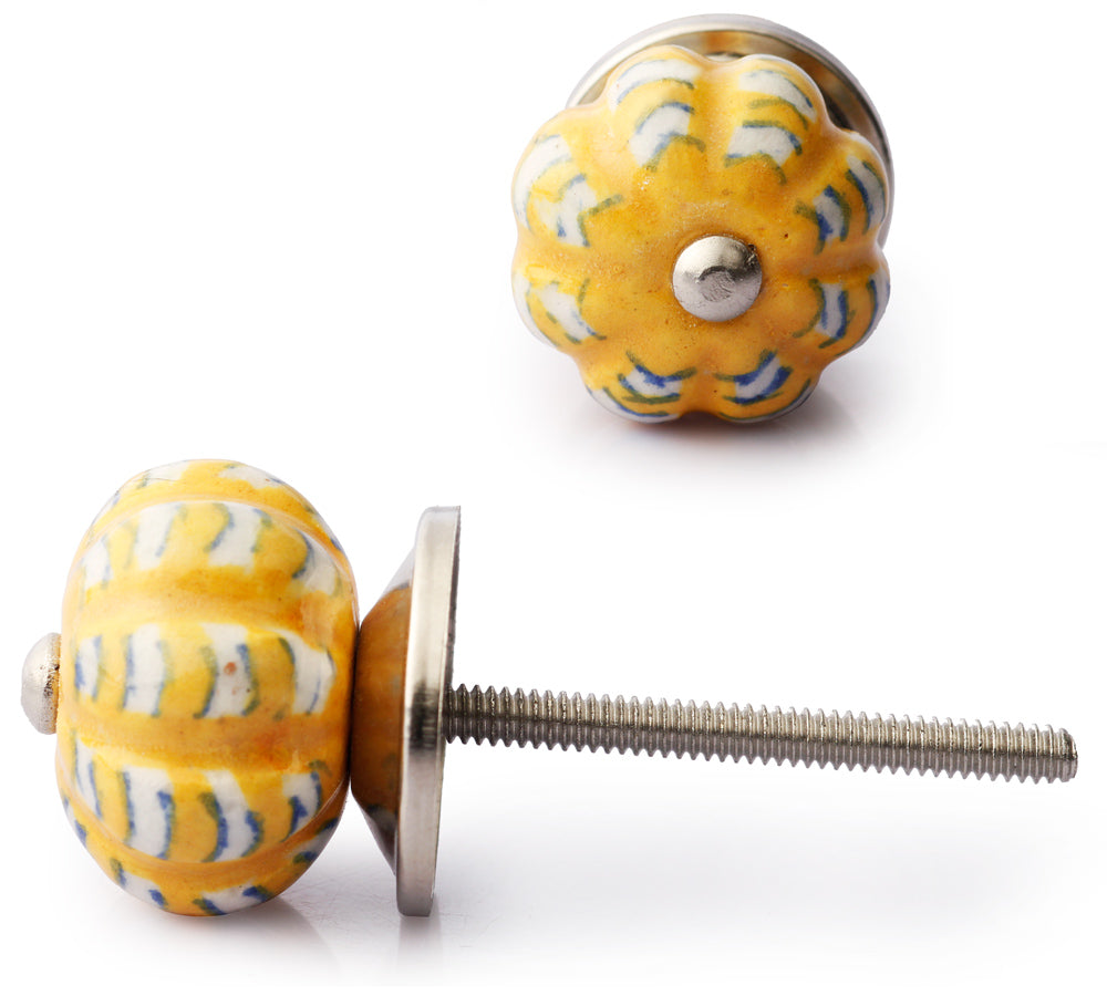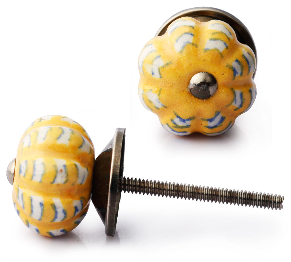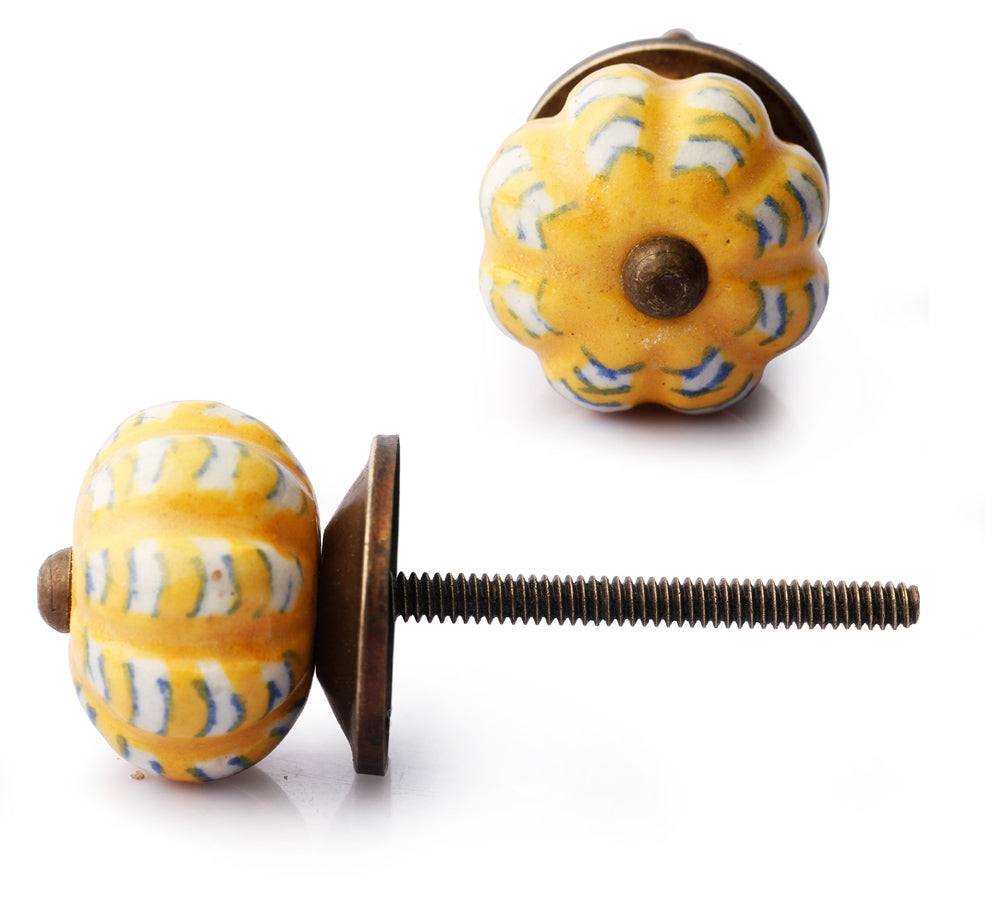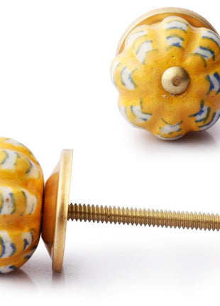 Yellow And White Ceramic Melon Shaped Dresser Cabinet Knob