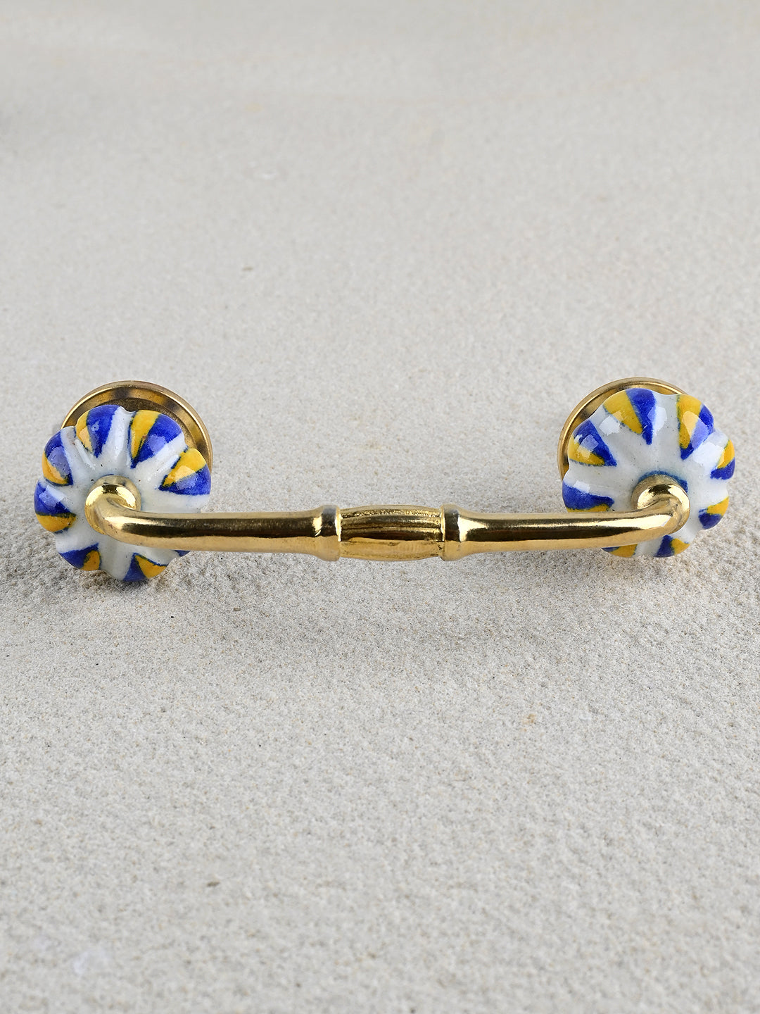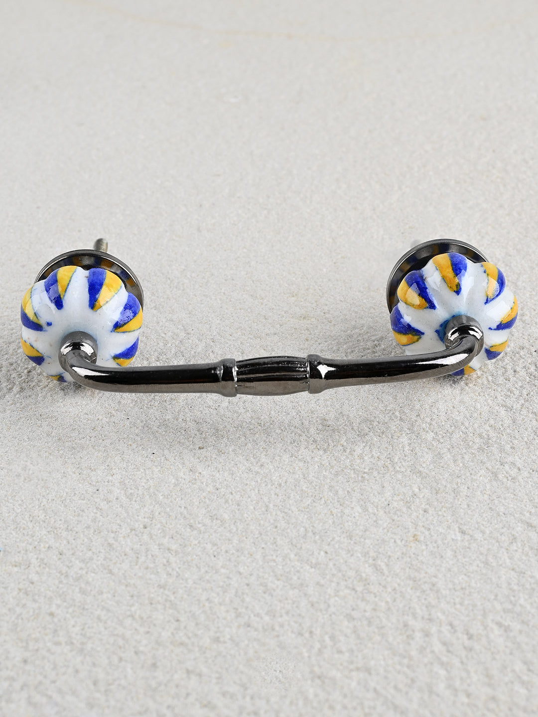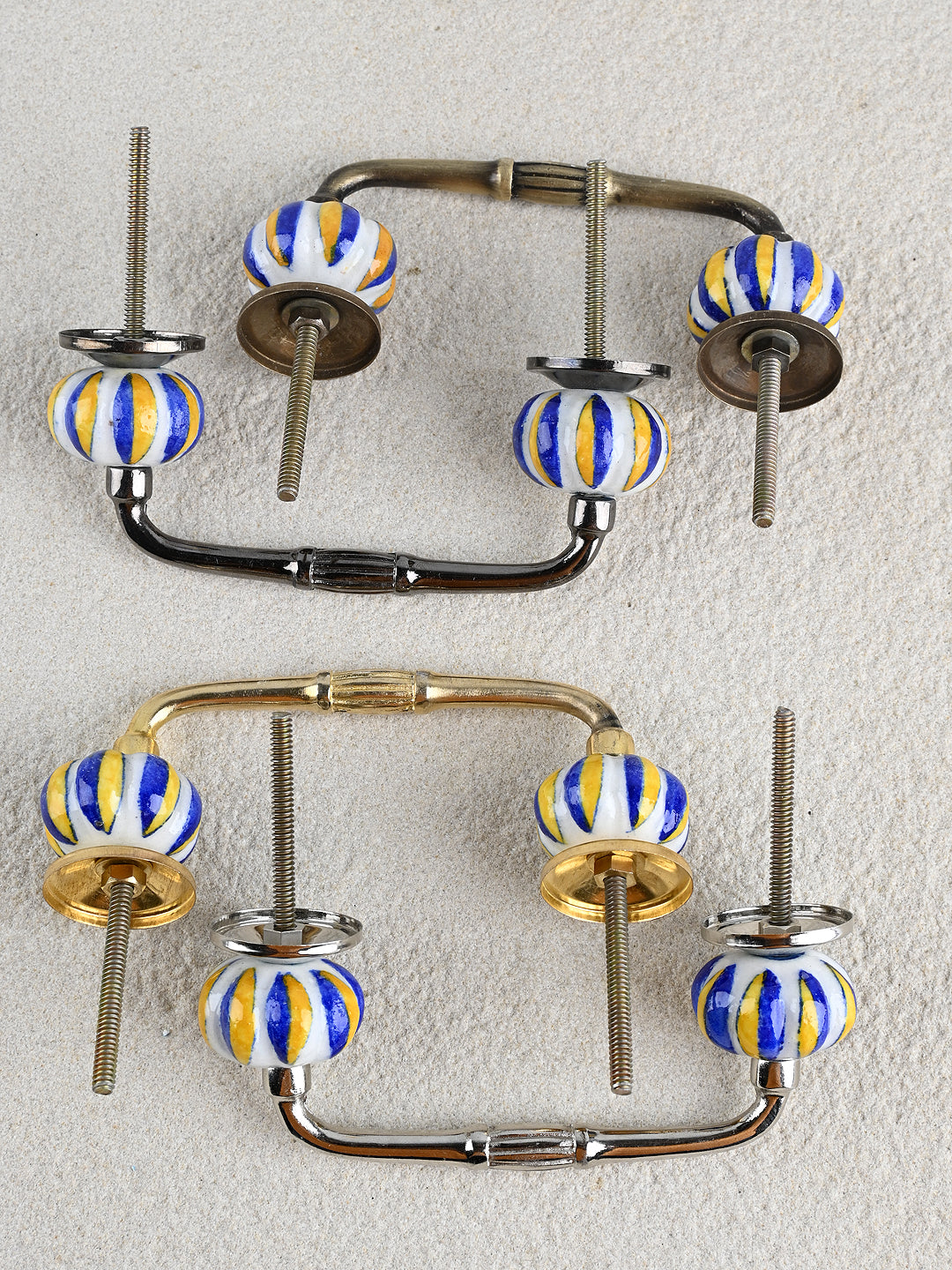 Yellow Blue White Melon Shape Ceramic Drawer Pull