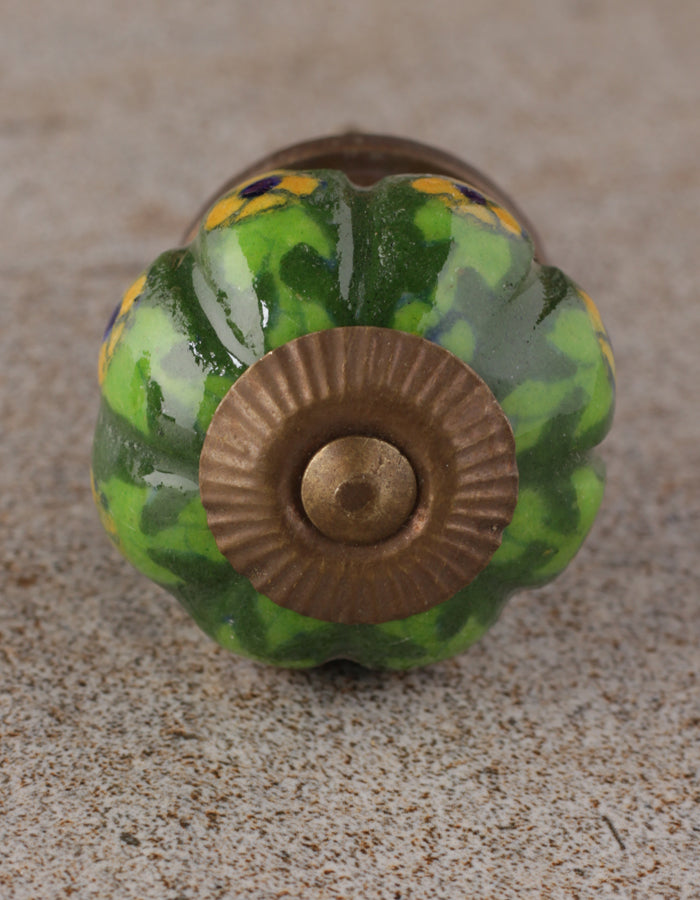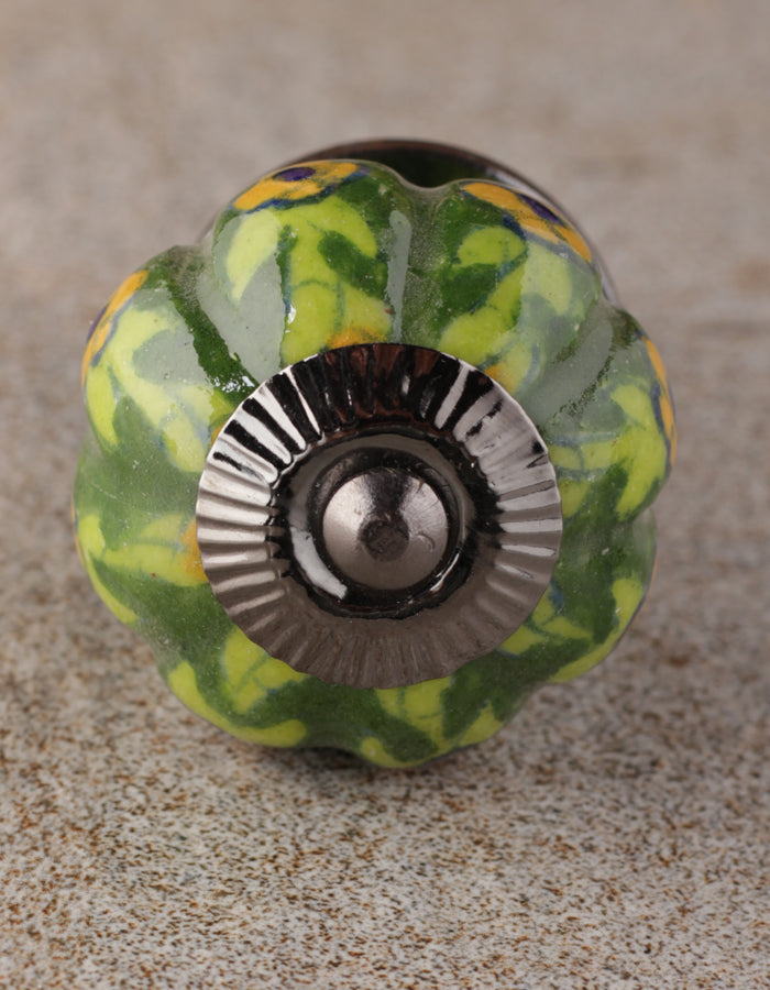 Yellow Flowers And Green Leaf with Dark Green Base Melon Knob