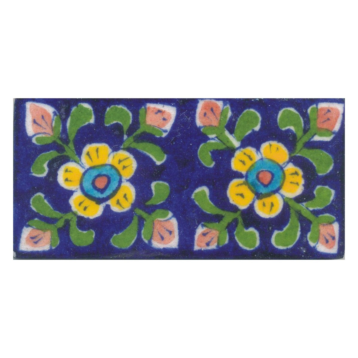 Yellow,Blue and Brown Flowers and Green leaf with Blue Base Tile