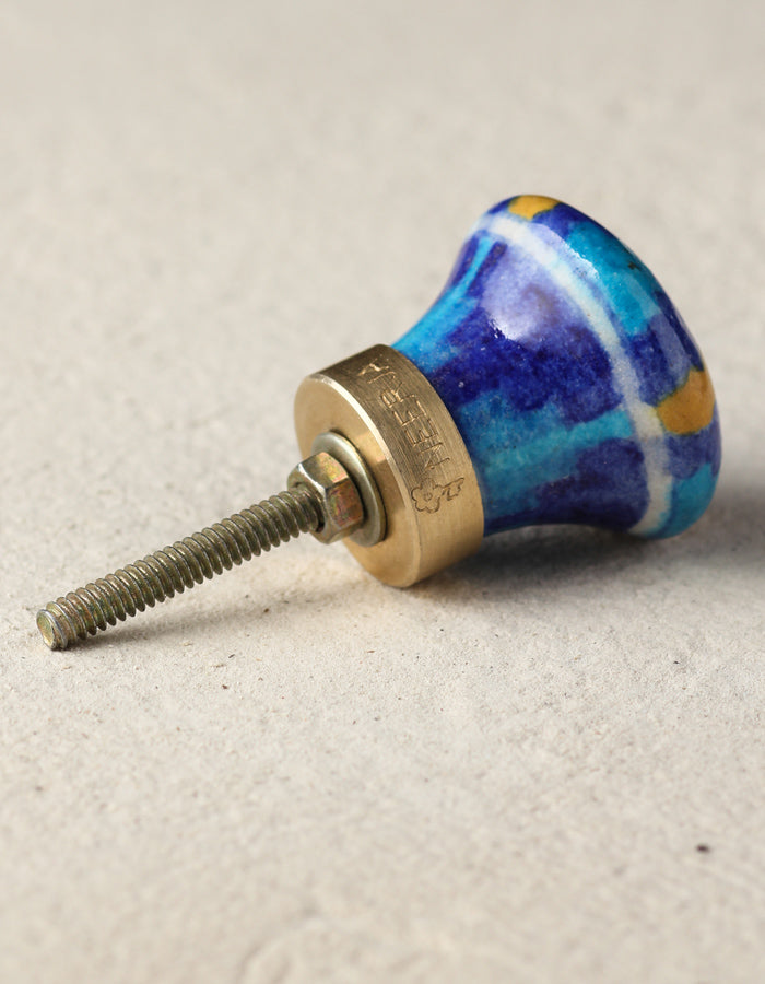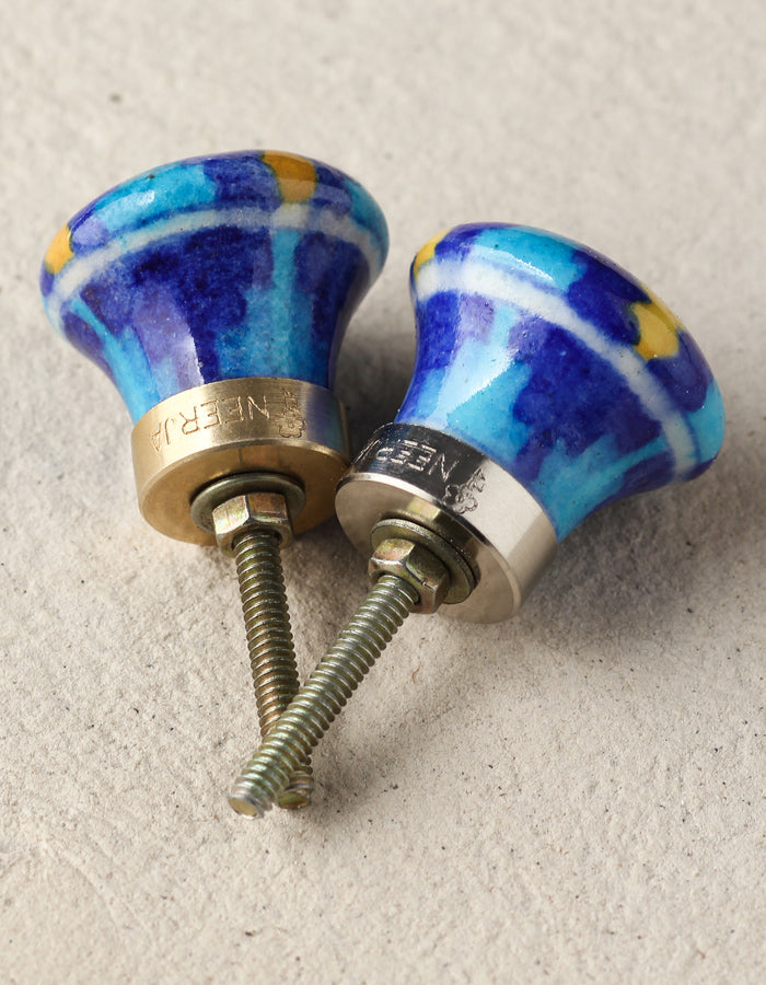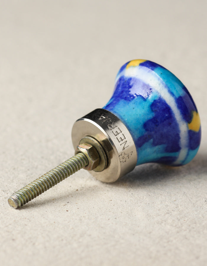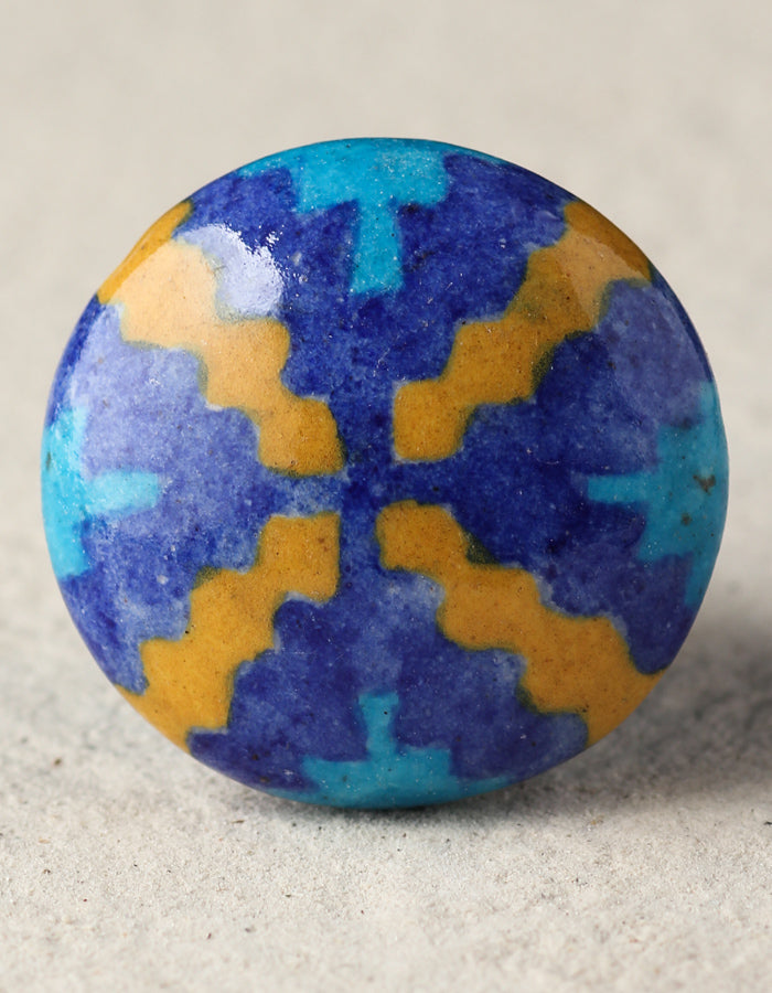 Zigzag Turquoise, Yellow And Blue Ceramic Blue Pottery Drawer Knob