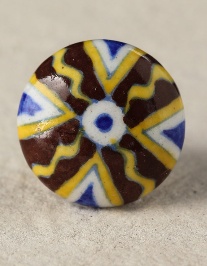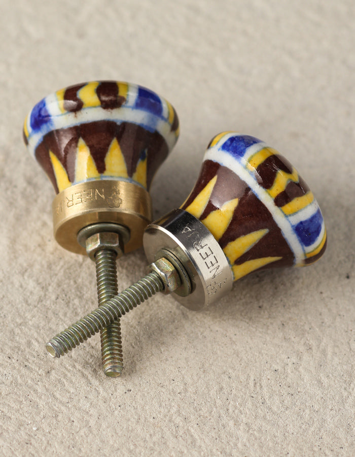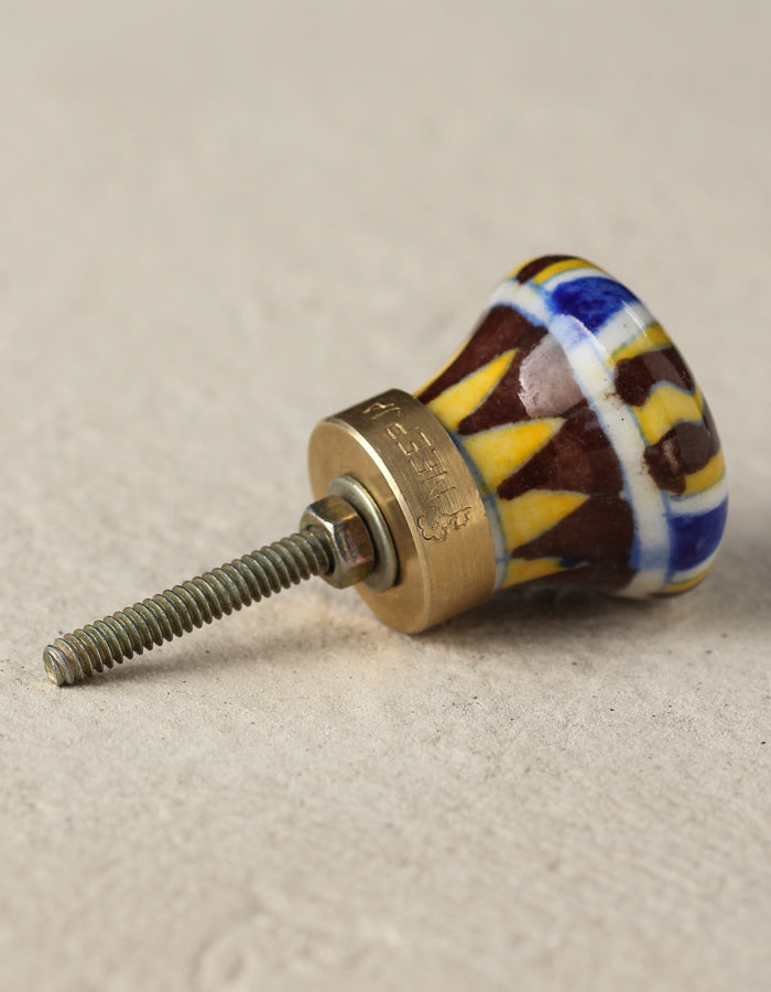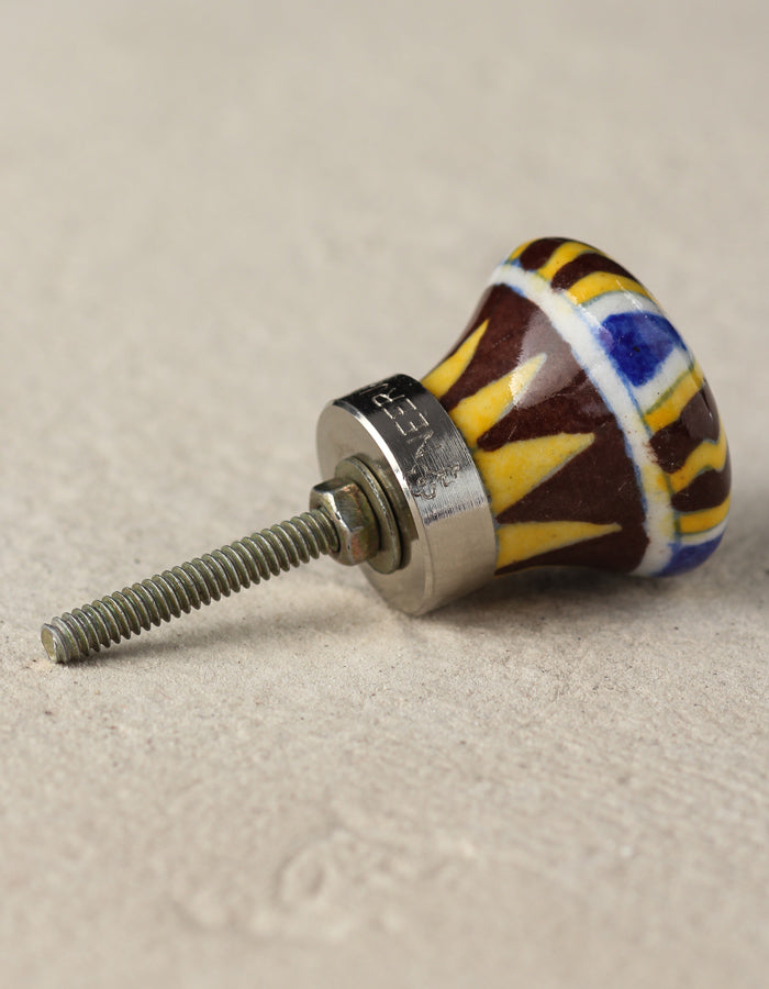 Zigzag Yellow, Brown And Blue Ceramic Blue Pottery Door Knob